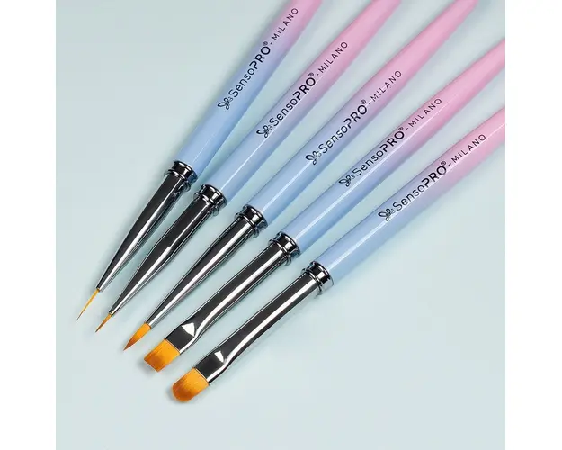 Set 5 Pensule Manichiura Nail Art & Constructie Unghii SensoPRO Milano, Pink & Blue