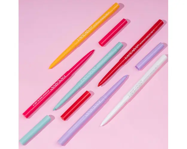 Conceput pentru a le oferi tuturor femeilor o libertate de expresie totala, Set Creion Retractabil pentru Contur Ochi Handaiyan #01, 6 buc este ideal pentru un machiaj al ochilor impecabil, in nuante bogate si rezistente. Datorita varfului retractabil si a texturii cremoase, creioanele pentru conturul ochilor sunt surprinzator de usor de folosit, permitandu-ti sa desenezi o linie uniforma si perfect definita. In plus, formula waterproof face ca machiajul tau sa persiste pe parcursul intregii zile. Cele 6 culori pe care le contine iti permite sa creezi o varietate de machiaje, pentru zi sau seara. Avantaje: Rezistente si waterproof Transfer perfect de culoare, pigmentare intensa Grosime controlabila, perfecte pentru incepatoare Culorile sunt intense pe piele, au un efect de marire a ochilor Adauga o nota de expresivitate si profunzime privirii tale cu Set Creion Retractabil pentru Contur Ochi Handaiyan #01, 6 buc! Produsul cu denumirea Set Creion Retractabil pentru Contur Ochi Handaiyan #01, 6 buc face parte din brandul Handaiyan, se afla in categoria Machiaj si subcategoria