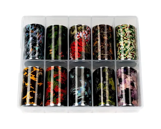 Set Folii Transfer LUXORISE #49 Perfect Camouflage, 10 buc contine 10 tipuri de folii ce iti ofera diversitate atunci cand iti faci manichiura. Foliile de transfer sunt ideale pentru decorul unghiilor false sau al unghiilor naturale. Poti folosi folia de transfer pe intreaga suprafata a unghiei sau doar pentru a crea modele inedite de nail art. Aceasta ramane pe unghie doar in zona in care se aplica lipiciul special pentru folii. Lipiciul pentru foliile de transfer se poate aplica direct pe unghie sau peste un strat de lac de unghii apropiat de culoarea foliei. Mod de utilizare: Aplica lipiciul special pe toata suprafata unghiei sau doar in zona unde urmeaza sa aplici folia de transfer. Asteapta aproximativ 2-3 minute sa se usuce lipiciul. Cand acesta se usuca, devine transparent. Aplica folia pe unghie si preseaza pentru a intinde folia uniform pe suprafata acesteia. Trage folia, iar modelul va ramane transferat pe unghie in forma in care a fost aplicat lipiciul. Produsul cu denumirea Set Folii Transfer LUXORISE #49 Perfect Camouflage, 10 buc face parte din brandul Luxorise, se afla in categoria Nail art si subcategoria
