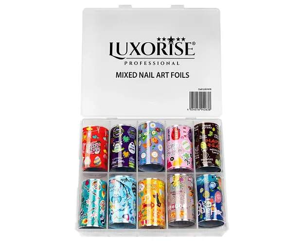 Set Folii Transfer LUXORISE #65 Easter Fun, 10 buc contine 10 tipuri de folii ce iti ofera diversitate atunci cand iti faci manichiura. Foliile de transfer sunt ideale pentru decorul unghiilor false sau al unghiilor naturale. Poti folosi folia de transfer pe intreaga suprafata a unghiei sau doar pentru a crea modele inedite de nail art. Aceasta ramane pe unghie doar in zona in care se aplica lipiciul special pentru folii. Lipiciul pentru foliile de transfer se poate aplica direct pe unghie sau peste un strat de lac de unghii apropiat de culoarea foliei. Mod de utilizare: Aplica lipiciul special pe toata suprafata unghiei sau doar in zona unde urmeaza sa aplici folia de transfer. Asteapta aproximativ 2-3 minute sa se usuce lipiciul. Cand acesta se usuca, devine transparent. Aplica folia pe unghie si preseaza pentru a intinde folia uniform pe suprafata acesteia. Trage folia, iar modelul va ramane transferat pe unghie in forma in care a fost aplicat lipiciul. Produsul cu denumirea Set Folii Transfer LUXORISE #65 Easter Fun, 10 buc face parte din brandul Luxorise, se afla in categoria Nail art si subcategoria