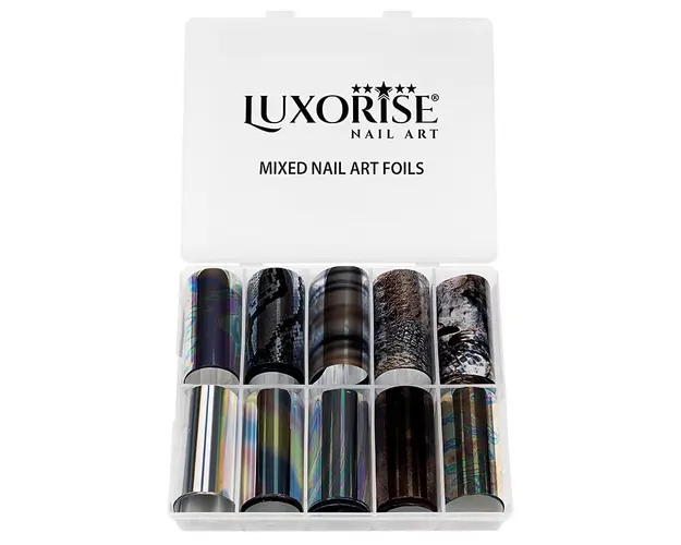 Set Folii Transfer LUXORISE All you love, 10 buc contine 10 tipuri de folii ce iti ofera diversitate atunci cand iti faci manichiura. Foliile de transfer sunt ideale pentru decorul unghiilor false sau al unghiilor naturale. Poti folosi folia de transfer pe intreaga suprafata a unghiei sau doar pentru a crea modele inedite de nail art. Aceasta ramane pe unghie doar in zona in care se aplica lipiciul special pentru folii. Lipiciul pentru foliile de transfer se poate aplica direct pe unghie sau peste un strat de lac de unghii apropiat de culoarea foliei. Mod de utilizare: Aplica lipiciul special pe toata suprafata unghiei sau doar in zona unde urmeaza sa aplici folia de transfer. Asteapta aproximativ 2-3 minute sa se usuce lipiciul. Cand acesta se usuca, devine transparent. Aplica folia pe unghie si preseaza pentru a intinde folia uniform pe suprafata acesteia. Trage folia, iar modelul va ramane transferat pe unghie in forma in care a fost aplicat lipiciul. Produsul cu denumirea Set Folii Transfer LUXORISE All you love, 10 buc face parte din brandul Luxorise, se afla in categoria Nail art si subcategoria