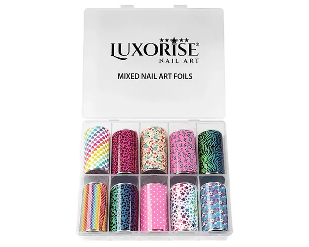Set Folii Transfer LUXORISE Dream Big, 10 buc contine 10 tipuri de folii ce iti ofera diversitate atunci cand iti faci manichiura. Foliile de transfer sunt ideale pentru decorul unghiilor false sau al unghiilor naturale. Poti folosi folia de transfer pe intreaga suprafata a unghiei sau doar pentru a crea modele inedite de nail art. Aceasta ramane pe unghie doar in zona in care se aplica lipiciul special pentru folii. Lipiciul pentru foliile de transfer se poate aplica direct pe unghie sau peste un strat de lac de unghii apropiat de culoarea foliei. Mod de utilizare: Aplica lipiciul special pe toata suprafata unghiei sau doar in zona unde urmeaza sa aplici folia de transfer. Asteapta aproximativ 2-3 minute sa se usuce lipiciul. Cand acesta se usuca, devine transparent. Aplica folia pe unghie si preseaza pentru a intinde folia uniform pe suprafata acesteia. Trage folia, iar modelul va ramane transferat pe unghie in forma in care a fost aplicat lipiciul. Produsul cu denumirea Set Folii Transfer LUXORISE Dream Big, 10 buc face parte din brandul Luxorise, se afla in categoria Nail art si subcategoria