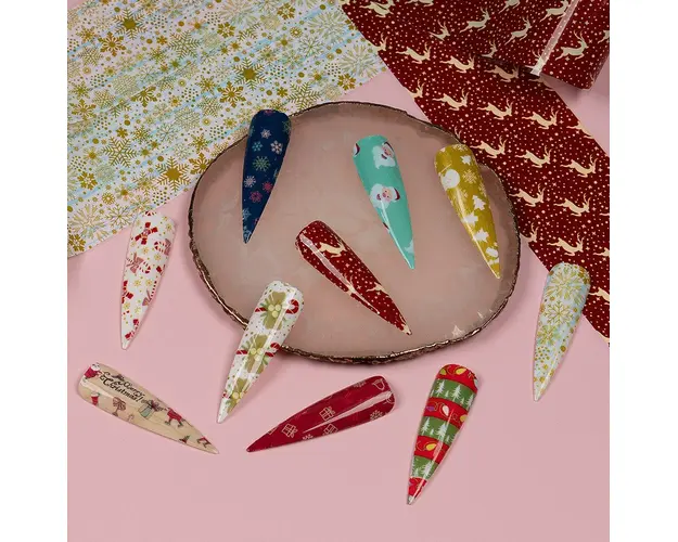 Set Folii Transfer LUXORISE Happy Christmas, 10 buc sunt ideale pentru decorul unghiilor tehnice dar pot fi folosite si pentru nail art pe unghiile naturale. Folia de transfer se poate folosi pe intreaga suprafata a unghiei sau doar pe o portiune pentru a crea modele creative de nail art. Aceasta ramane pe unghie doar in zona in care se aplica lipiciul special pentru folii. Lipiciul pentru foliile de transfer se poate aplica direct pe unghie sau peste un strat de lac de unghii apropiat de culoarea foliei. Mod de utilizare: Aplica lipiciul special pe toata suprafata unghiei sau doar in zona unde urmeaza sa aplici folia de transfer. Asteapta aproximativ 2-3 minute sa se usuce lipiciul. Cand acesta se usuca, devine transparent. Aplica folia pe unghie si preseaza pentru a intinde folia uniform pe suprafata acesteia. Trage folia, iar modelul va ramane transferat pe unghie in forma in care a fost aplicat lipiciul. Set 10 buc Produsul cu denumirea Set Folii Transfer LUXORISE Happy Christmas, 10 buc face parte din brandul Luxorise, se afla in categoria Nail art si subcategoria