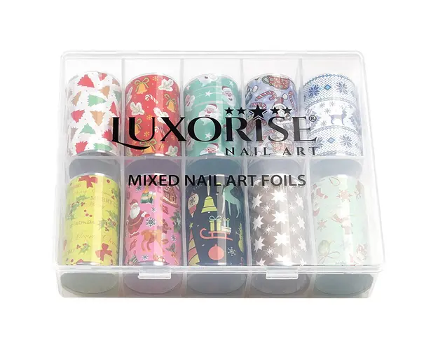 Set Folii Transfer LUXORISE Perfect Christmas, 10 buc sunt ideale pentru decorul unghiilor tehnice dar pot fi folosite si pentru nail art pe unghiile naturale. Folia de transfer se poate folosi pe intreaga suprafata a unghiei sau doar pe o portiune pentru a crea modele creative de nail art. Aceasta ramane pe unghie doar in zona in care se aplica lipiciul special pentru folii. Lipiciul pentru foliile de transfer se poate aplica direct pe unghie sau peste un strat de lac de unghii apropiat de culoarea foliei. Mod de utilizare: Aplica lipiciul special pe toata suprafata unghiei sau doar in zona unde urmeaza sa aplici folia de transfer. Asteapta aproximativ 2-3 minute sa se usuce lipiciul. Cand acesta se usuca, devine transparent. Aplica folia pe unghie si preseaza pentru a intinde folia uniform pe suprafata acesteia. Trage folia, iar modelul va ramane transferat pe unghie in forma in care a fost aplicat lipiciul. Set 10 buc Produsul cu denumirea Set Folii Transfer LUXORISE Perfect Christmas, 10 buc face parte din brandul Luxorise, se afla in categoria Nail art si subcategoria