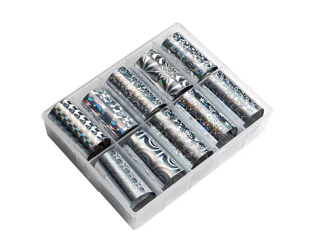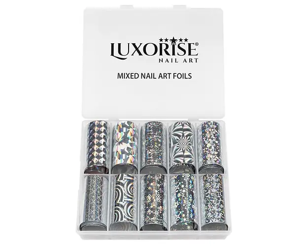 Set Folii Transfer LUXORISE Silver Opulence, 10 buc contine 10 tipuri de folii ce iti ofera diversitate atunci cand iti faci manichiura. Foliile de transfer sunt ideale pentru decorul unghiilor false sau al unghiilor naturale. Poti folosi folia de transfer pe intreaga suprafata a unghiei sau doar pentru a crea modele inedite de nail art. Aceasta ramane pe unghie doar in zona in care se aplica lipiciul special pentru folii. Lipiciul pentru foliile de transfer se poate aplica direct pe unghie sau peste un strat de lac de unghii apropiat de culoarea foliei. Mod de utilizare: Aplica lipiciul special pe toata suprafata unghiei sau doar in zona unde urmeaza sa aplici folia de transfer. Asteapta aproximativ 2-3 minute sa se usuce lipiciul. Cand acesta se usuca, devine transparent. Aplica folia pe unghie si preseaza pentru a intinde folia uniform pe suprafata acesteia. Trage folia, iar modelul va ramane transferat pe unghie in forma in care a fost aplicat lipiciul. Produsul cu denumirea Set Folii Transfer LUXORISE Silver Opulence, 10 buc face parte din brandul Luxorise, se afla in categoria Nail art si subcategoria