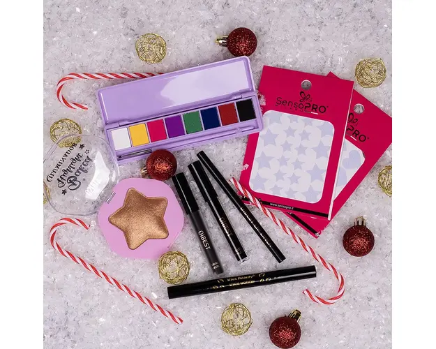 Alege Set Machiaj Bewitched Beauty Box pentru un machiaj tematic de Halloween! Setul cuprinde: 1 x Eyeliner tip Carioca cu Stampila Model Stea, Kiss Beauty #01 1 x Paleta Machiaj Multicolora Handaiyan, Face&Body Painting Plate #02 1 x Set 3 in 1 Ruj Lichid Mat & Lip Gloss & Creion Contur Buze Qibest #12 1 x Sticker Sablon Machiaj Fantasy SensoPRO Milano, Heart Shapes 1 x Sticker Sablon Machiaj Fantasy SensoPRO Milano, Stars Shapes CADOU 1 x Iluminator Pudra Star Baked Highlight Ushas (nuanta in functie de stoc) Fii gata de cea mai spectaculoasa petrecere din an cu Set Machiaj Bewitched Beauty Box! Produsul cu denumirea Set Machiaj Bewitched Beauty Box face parte din brandul , se afla in categoria Machiaj si subcategoria