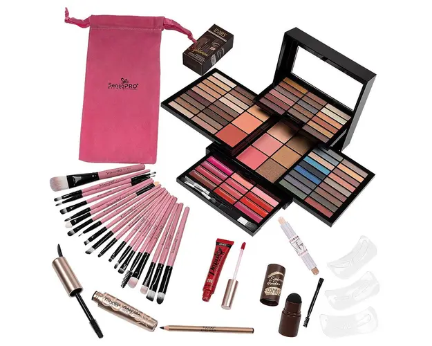 Set Machiaj My Dream MakeUp + CADOURI este inspirat de dragostea pentru culoare, feminitate si frumusete. Atent alese, p rodusele cosmetice pe care le contine au aplicare lejera si pigmentare ridicata, fiind perfecte pentru a crea cele mai spectaculoase machiaje. Acest set de machiaj cuprinde: Trusa Machiaj Multifunctionala Unlimited Beauty, SensoPRO Milano - contine farduri cremoase si usor de blenduit. Tonurile sunt perfecte atat pentru un make-up extravagant de seara, cat si pentru unul lejer de zi. Set 20 Pensule Machiaj Profesionale SensoPRO Milano Travel Pink + CADOU saculet depozitare - te va sustine in fiecare pas al machiajului tau. Pensulele sunt fine si delicate cu tenul tau, au o atingere catifelata si un design de exceptie. CADOU - Lip Gloss Lichid Popular Ushas (nuanta in functie de stocul disponibil) CADOU - Set 2 in 1 Mascara si Creion Contur Ochi, Febble CADOU - Stampila Sprancene 3 in 1 cu Pensula & Sabloane Ushas Flawless Brow (nuanta in functie de stocul disponibil) CADOU - Concealer si Contouring 2 in 1 Perfect Match TLM (nuanta in functie de stocul disponibil) Set Machiaj My Dream MakeUp + CADOURI incorporeaza toate elementele necesare realizarii unui make-up complet! *Ambalarea tip cadou a produsului este momentan indisponibila. Produsul cu denumirea Set Machiaj My Dream MakeUp + CADOURI face parte din brandul , se afla in categoria Machiaj si subcategoria
