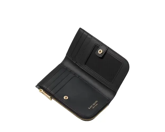 Kate Spade este un brand care s-a lansat in anul 1993 cu sase modele de genti, dar care in prezent ofera o gama larga de produse precum articole vestimentare, incaltaminte, bijuterii si articole pentru decorarea locuintei. Principiile brand-ului ii definesc stilul unic, modern si sofisticat care isi propune sa ofere un sentiment de fericire prin fiecare produs creat. Portofelul Spade Flower Small Slim Bifold este un accesoriu compact si elegant, realizat din panza acoperita Spade Flower, creata in colaborare cu renumita moara italiana Limonta. Captusit cu faille reciclat si decorat cu un logo Pinmount, portofelul se inchide cu capse, fiind perfect pentru utilizarea zilnica. Produsul cu denumirea Spade flower small slim bifold wallet face parte din brandul Spaderm, se afla in categoria Genti si subcategoria