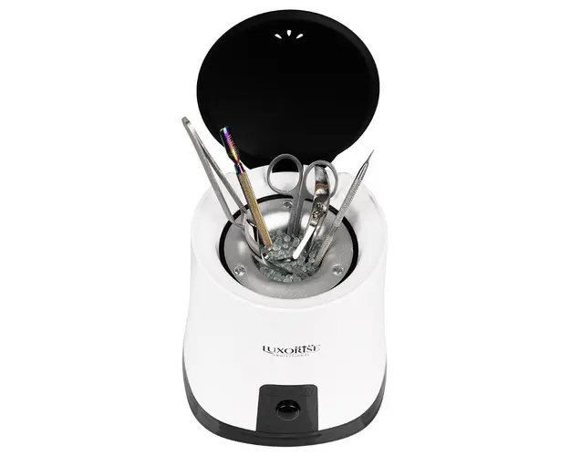 Sterilizator cu bile de quartz PowerUltra PRO - LUXORISE pentru sterilizarea rapida a instrumentelor din metal precum: foarfece de tuns, ustensile manichiura si pedichiura. Bilele de quartz sunt un foarte bun conductor termic distribuind temperatura uniform pe intreaga suprafata a instrumentelor de sterilizat, mentinand o temperatura de 250C. Instrumentele metalice utilizate in procesul de manichiura, pedichiura (forfecute, instrumente pentru cuticule, chiurete etc.) trebuie atent dezinfectate si sterilizate dupa fiecare utilizare, pentru a evita posibilitatea contaminarii cu diferiti germeni patologici: virusi (mai ales cei hepatici), bacterii, ciuperci. Sterilizatorul se livreaza impreuna cu un saculet de bile de quartz suficiente pentru aproximativ 1 an. Recomandat pentru uz personal. Mod de utilizare: 1. Conectati sterilizatorul la priza. 2. Turnati bilelele de quartz in cuva aparatului, inchideti capacul, apoi porniti sterilizatorul cu ajutorul butonului ON/OFF. 3. Asteptati aproximativ 10-12min pana cand bilele de quartz ajung la temperatura maxima. 4. Spalati si dezinfectati instrumentele pe care urmeaza sa le sterilizati. Instrumentele trebuie sa fie complet uscate inainte de a le introduce in sterilizator 5.Asezati instrumentele in sterilizator pentru 20-30sec apoi opriti sterilizatorul. Sterilizatorul este dotat cu 2 becuri care au functionalitati diferite: cel rosu arata ca incalzeste , iar cel verde arata ca sterilizatorul a ajuns la temperatura maxima. Specificatii tehnice: - Model: LUX-110TX - Temperatura: 0-250 C - Putere: 100W - Tensiune alimentare: 220-240V 50Hz - Material: ABS/ Aluminiu - Culoare: Alb - Dimensiune: 14.5 x14.5 x15 cm - Greutate: 420 g - Adancime cuva: 7.5 cm Pachetul contine: - 1 buc x Sterilizator instrumente profesional - 1 sac x Bile de quartz - 1 buc x Manual de utilizare Se beneficiaza de garantia legala de conformitate asa cum aceasta este reglementata de dispozitiile Legii nr. 296/2004 privind Codul Consumului, cu modificarile si completarile ulterioare coroborate cu dispozitiile OUG nr. 140/2021 privind vanzarea produselor si garantiile asociate acestora, cu modificarile si completarile ulterioare. Produsul cu denumirea Sterilizator quartz PowerMAX Ultra - LUXORISE face parte din brandul Luxorise, se afla in categoria Aparatura unghii si subcategoria