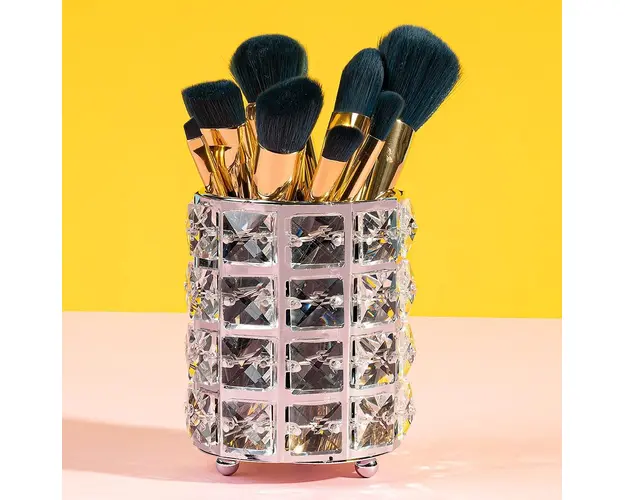 Suport Pensule Machiaj Crystal Magic Silver, LUXORISE