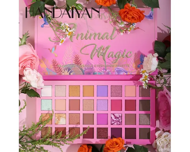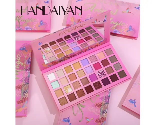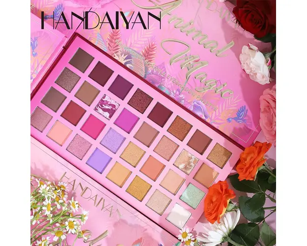 Trusa Farduri 32 Culori Animal Magic Handaiyan iti ofera o paleta bogata de 32 de nuante delicioase, perfecte pentru machiaje de zi sau de seara. Cu o gama variata de culori calde si reci, care se completeaza reciproc, aceasta paleta este ideala pentru a crea look-uri glam sau spectaculoase. Fardurile au o textura ultraconcentrata pentru un impact cromatic puternic, iar paleta contine 18 farduri mate, 12 farduri cu sclipici si 2 farduri glitter, usor de blenduit intre ele. Cu nuante neutre incluse in paleta, poti crea efecte de tranzitie si iluminare esentiale pentru machiajele 3D. Desi textura este lejera si catifelata pe piele, fardurile ofera o intensitate maxima a culorii cu minimum de efort. Formula lor rezistenta asigura ca machiajul tau va ramane impecabil pentru o perioada indelungata. Gramaj: 38g Produsul cu denumirea Trusa Farduri 32 Culori Animal Magic Handaiyan face parte din brandul , se afla in categoria Machiaj si subcategoria