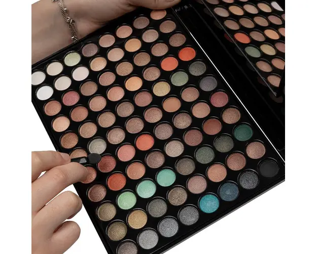 Trusa Farduri Nude Elements SensoPRO Milano, 88 culori te va ajuta sa obtii un look semi-nude combinat cu nuante calde, deosebit de delicate cu tenul tau! Trusa cuprinde o paleta de 88 de farduri mate si sidefate dispuse gradual, de la cele mai inchise, pana la cele mai deschise. Pigmentii au o aderenta foarte buna, putand fi aplicati foarte lejer. Rezista pe pleoape intreaga zi, fara sa se stearga sau sa se stranga pe pliuri. Pentru a oferi expresivitate ochilor tai, foloseste un fard auriu pe pliul pleoapei si te va ajuta sa obtii un aspect fresh, luminos si odihnit. Eleganta design-ului cutiei de prezentare este completata de oglinda incorporata in partea superioara si doua aplicatoare duble cu burete. Culorile cu o pigmentare intensa si textura ultra lejera te ajuta sa obtii machiaje potrivite oricarui eveniment. Lasa-te cuprinsa de magia culorilor din trusa farduri profesionala Nude Elements si ochii tai vor dobandi stralucire, intr-o maniera profesionala. Dimensiune trusa: 23x16.5 cm Valabilitate: 12 luni de la deschidere Produsul cu denumirea Trusa Farduri Nude Elements SensoPRO Milano, 88 culori face parte din brandul Sensopro milano, se afla in categoria Machiaj si subcategoria