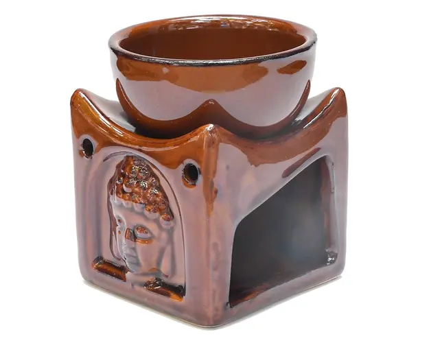 Vas aromoterapie cu buddha medicine maro Acesta este un minunat vas pentru aromoterapie folosit la esente aromate sau lumanari parfumate. Are sculptat capul lui Buddha Medicine, cel mai puternic simbol de sanatate. In partea de sus se pun esente aromate care la temperatura lumanarii se evapora si produc un miros placut si purifica energiile. Pentru ca este gravat cu Buddha Medicine , alunga energiile de boala din casa noastra. Numit si Buddha Tamaduitorul acesta aduce sanatate in viata noastra. Produsul cu denumirea Vas aromoterapie cu buddha medicine maro face parte din brandul , se afla in categoria Feng shui pentru casa si birou si subcategoria