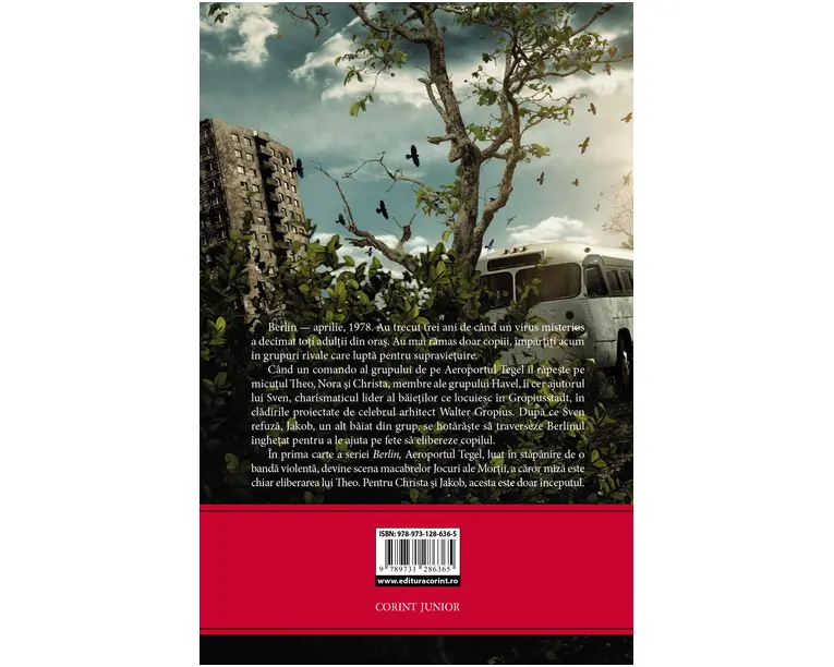 NU ESTE LUMEA PE CARE AU ALES-O.nDAR ESTE SINGURA RAMASA. O noua distopie pe gustul fanilor seriei Divergent laCorint Junior.nAprilie 1978: Zidul Berlinului strajuieste un oras în ruina, fara electricitate si bântuit de animale. Doar cei sub 18 ani au reusit sa supravietuiasca unei molime misterioase, care a sters toti adultii de pe fata pamântului.nÎmpartiti în factiuni, fetele si baietii din Berlin lupta, se coalizeaza, urasc, iubesc, ucid si mor.nSeria urmareste trei ani din viata lui Jakob, care face parte din gruparea din Gropiusstadt, si a Christei, care apartine grupului cunoscut sub numele de Havel. Trei ani care îi vor apropia de inevitabilul prag al mortii, timp în care vor trebui sa comprime sentimente, emotii si experiente cât pentru o viata. Focurile din Tegel este primul volum al unei serii formate din sapte carti. Mai multe informatii pe: Produsul cu denumirea BERLIN. Focurile din Tegel (vol.1 din seria BERLIN) face parte din brandul Corint, se afla in categoria Carti de sanatate si subcategoria