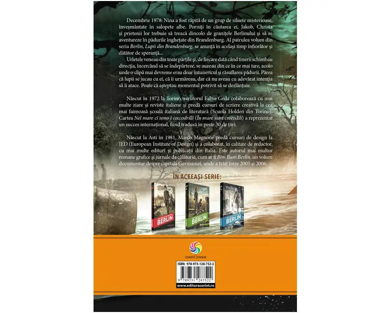 Decembrie 1978: un grup de siluete misterioase, învesmântate în salopete albe, au rapit-o pe Nina. Porniti în cautarea ei, Jakob, Christa si prietenii lor trebuie sa treaca dincolo de granitele Berlinului si sa se aventureze în padurile înghetate din Brandenburg. Al patrulea volum din seria Berlin, Lupii din Brandenburg, se anunta în acelasi timp înfiorator si datator de speranta...n n Urletele veneau din toate partile, si, de fiecare data când schimbau directia, încercând sa se îndeparteze, se auzeau din ce în ce mai tare, acolo unde o clipa mai devreme, erau doar întunericul si rasuflarea padurii. Parea ca lupii se jucau cu ei, ca îi urmareau, dar ca nu aveau cu adevarat intentia sa îi atace. Poate ca asteptau momentul potrivit sa se dezlantuie. Produsul cu denumirea BERLIN. Lupii din Brandenburg (vol.4 din seria Berlin) face parte din brandul Corint, se afla in categoria Carti de sanatate si subcategoria