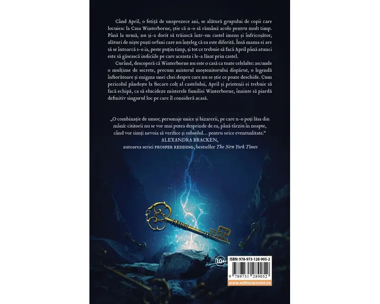 Cand April, o fetita de unsprezece ani, se alatura grupului de copii care locuiesc la Casa Winterborne, stie ca n-o sa ramana acolo pentru mult timp. Pana la urma, nu si-a dorit sa traiasca intr-un castel imens si infricosator, alaturi de niste pusti orfani care nu inteleg ca ea este diferita. Insa mama ei are sa se intoarca s-o ia, peste putin timp, si tot ce trebuie sa faca April pana atunci este sa gaseasca indiciile pe care aceasta i le-a lasat prin castel. Curand, descopera ca Winterborne nu este o casa ca toate celelalte: ascunde o multime de secrete, precum misterul mostenitorului disparut, o legenda infioratoare si enigma unei chei despre care nu se stie ce poate deschide. Cum pericolul pandeste la fiecare colt al castelului, April si prietenii ei trebuie sa faca echipa, ca sa elucideze misterele familiei Winterborne, inainte sa piarda definitiv singurul loc pe care il considera acasa. „O combinatie de umor, personaje unice si bizarerii, pe care n-o poti lasa din mana: cititorii nu se vor mai putea desprinde de ea, pana tarziu in noapte, cand vor simti nevoia sa verifice si subsolul… pentru orice eventualitate.” ALEXANDRA BRACKEN, autoarea seriei prosper redding, bestseller The New York Times „O carte plina de aventura, mister, cu intorsaturi de situatie si prietenii surprinzatoare. M-am indragostit de ea!” MELISSA DE LA CRUZ, autoarea seriei The Descendants bestseller The New York Times „Este genul de lectura care te tine cu sufletul la gura. Debutul lui Carter in literatura pentru pre-adolescenti este un triumf: o poveste sfasietoare despre regasirea familiei si un roman politist captivant si evocator, care te face sa dai pagina dupa pagina. Am fost impresionata de protagonista April […] si de curajul extraordinar de care da dovada cand se deschide in fata celorlalti.” ROSHANI CHOKSHI, autoarea romanului Aru Shah si sfarsitul timpului, bestseller The New York Times „Un thriller modern impletit cu literatura de aventuri in stil clasic.” School Library Journal Produsul cu denumirea Casa Winterborne. Razbunare si curaj face parte din brandul Corint, se afla in categoria Carti de sanatate si subcategoria