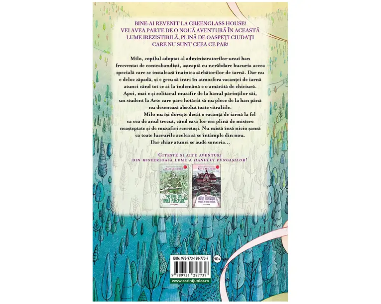 Milo, copilul adoptat al administratorilor unui han frecventat de contrabandisti, asteapta cu nerabdare bucuria aceea speciala care se instaleaza înaintea sarbatorilor de iarna. Dar nu e deloc zapada, si e greu sa intri în atmosfera vacantei de iarna atunci când tot ce ai la îndemâna e o amarâta de chiciura. Apoi mai e si solitarul musafir de la hanul parintilor sai, un student la Arte care pare hotarât sa nu plece de la han pâna nu deseneaza absolut toate vitraliile. Milo nu îsi doreste decât o vacanta de iarna la fel ca cea de anul trecut, când casa lor era plina de musafiri secretosi si mistere neasteptate. Nu exista însa nicio sansa ca toate lucrurile acelea sa se întâmple din nou. Dar chiar atunci se aude soneria… Kate Milford a scris mai multe romane devenite bestselleruri New York Times, printre care Misterul din hanul pungasilor aparut, în traducere, la Editura Corint Junior. Produsul cu denumirea Fantomele din hanul pungasilor face parte din brandul Corint, se afla in categoria Carti de sanatate si subcategoria