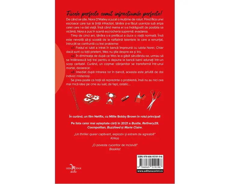 Fiicele perfecte comit infractiunile perfecte! Trei tineri. Doi jefuitori.n O singura cale de iesire. n De când se stie, Nora O’Malley a jucat o multime de roluri. Fiind fiica unei escroace care lua la tinta infractori, tânara si-a facut ucenicia sub aripa celei care i-a dat viata. Însa când mama ei s-a îndragostit de posibila sa victima, Nora a pus în scena escrocheria suprema: evadarea. Timp de cinci ani, tânara s-a prefacut a duce o viata normala. Însa este nevoita sa-si scoata de la naftalina talentele la care a renuntat, întrucât se confrunta cu trei probleme: n #1: Fostul ei iubit a intrat în banca împreuna cu iubita Norei. Chiar daca sunt cu totii prieteni, Wes nu stia despre ea si Iris. n #2: În dimineata de dupa ce Wes le-a gasit sarutându-se, urmau sa se întâlneasca toti trei pentru a depune la banca banii adunati într-un scop caritabil. Curând, un cosmar stânjenitor se transforma într-unul mortal, deoarece: n #3: Imediat dupa intrarea lor în banca, aceasta este jefuita de doi indivizi misteriosi. Se prea poate ca hotii sa reprezinte o problema, însa nu au nici cea mai mica idee pe cine au luat, de fapt, ostatic… „Un thriller queer captivant, exploziv si extrem de agreabil!” Kirkus „O poveste cuceritor de incisiva!” Booklist „De la Veronica Mars încoace n-au mai fost combinate cu atâta maiestrie înfumurarea tipica tinerilor, suferinta cumplita si noir-ul cu adolescenti! Fetele care am fost cândva este un thriller cinematografic si rascolitor, cu un ritm perfect. […] O poveste de dragoste, o tragedie si o pilda despre recapatarea independentei si a puterii.” Bookpage „Aceasta poveste cu actiune non-stop este încarcata de suspans. […] Un thriller în care personajele dovedesc faptul ca se pot baza pe puterea, prietenia si dorinta de a fi oamenii încrezatori si atenti la ceilalti care stiu ca pot fi.” School Library Journal „Sharpe acorda la fel de multa atentie atât traumei [Norei] – si sistemului opresiv care îngaduie si scuza abuzul -, cât si misterului si actiunii care te tin cu sufletul la gura. Numarul mic de personaje, de altfel, bine conturate, precum si substratul emotional transforma povestea într-un thriller captivant.” Publishers Weekly Produsul cu denumirea Fetele care am fost candva face parte din brandul Corint, se afla in categoria Carti de sanatate si subcategoria