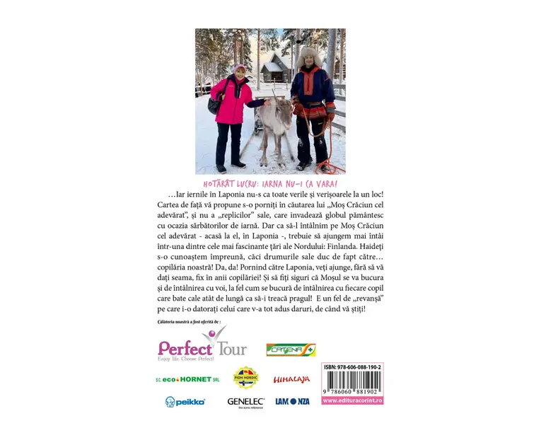„Nu retin ca, pana acum, sa fi fost scrisa vreo «Biblie» a lui Mos Craciun! Sa‑l fi urmat cineva, in scris, asemenea unui apostol. Sa‑i calce pe urme si sa ne intareasca credinta in el. Mos Craciun exista in copilariile noastre. Dar, prin jurnalul de fata, pe care Marina Almasan ni‑l propune, Mos Craciun ni se infatiseaza aievea. Nu mai este doar o poveste.” ADRIAN ARTENE, jurnalist „In aceasta carte, autoarea face o introspectie a calatoriei sale pe care a realizat‑o «in cautarea lui Mos Craciun», chiar in tara acestuia, in Finlanda. Ea se bucura ca un copil de fiecare experienta avuta («precum fetita cu chibrituri a lui Andersen»), de fiecare om cu care se intalneste, incercand astfel sa aduca la cunostinta publicului cititor povestea pe care ea o traieste aici, acum.” IULIEAN HORNET, inventator Produsul cu denumirea In cautarea lui Mos Craciun. Jurnal de calatorie in Finlanda face parte din brandul Corint, se afla in categoria Carti de sanatate si subcategoria
