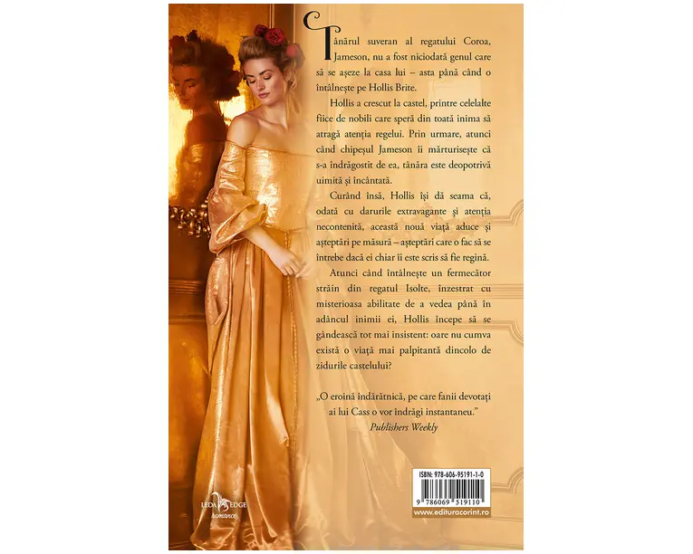 Tânarul suveran al regatului Coroa, Jameson, nu a fost niciodata genul care sa se aseze la casa lui – asta pâna când o întâlneste pe Hollis Brite. Hollis a crescut la castel, printre celelalte fiice de nobili care spera din toata inima sa atraga atentia regelui. Prin urmare, atunci când chipesul Jameson îi marturiseste ca s-a îndragostit de ea, tânara este deopotriva uimita si încântata. Curând, însa, Hollis îsi da seama ca, odata cu darurile extravagante si atentia necontenita, aceasta noua viata aduce si asteptari pe masura – asteptari care o fac sa se întrebe daca ei chiar îi este scris sa fie regina. Atunci când întâlneste un fermecator strain din regatul Isolte, înzestrat cu misterioasa abilitate de a vedea pâna în adâncul inimii ei, Hollis începe sa se gândeasca tot mai insistent: oare nu cumva exista o viata mai palpitanta dincolo de zidurile castelului? „Fanii autoarei vor astepta cu mare nerabdare al doilea volum al seriei pentru a afla care va fi soarta lui Hollis.” School Library Journal „Cititorii care adora sa devoreze tot ce înseamna romantism si monarhie vor savura aceasta noua poveste captivanta scrisa de Kiera Cass, autoarea popularei serii ALEGEREA.” Common Sense Media „O eroina îndaratnica, pe care fanii devotati ai lui Cass o vor îndragi instantaneu.” Publishers Weekly Produsul cu denumirea Logodnicii face parte din brandul Corint, se afla in categoria Carti de sanatate si subcategoria