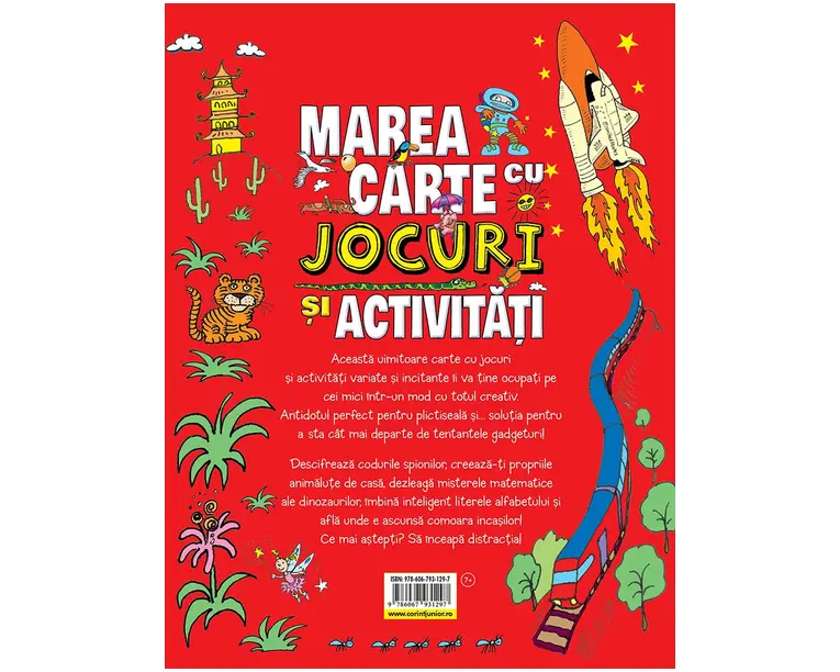 Aceasta uimitoare carte cu jocuri si activitati variate si incitante îi va tine ocupati pe cei mici într-un mod cu totul creativ. Antidotul perfect pentru plictiseala si… solutia pentru a sta cât mai departe de tentantele gadgeturi! Descifreaza codurile spionilor, creeaza-ţi propriile animaluţe de casa, rezolva misterele matematice ale dinozaurilor, îmbina inteligent literele alfabetului şi afla unde e ascunsa comoara incaşilor! Produsul cu denumirea Marea carte cu jocuri si activitati face parte din brandul Corint, se afla in categoria Carti de sanatate si subcategoria