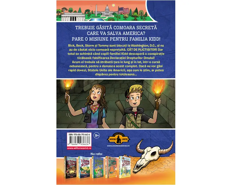 Bestseller international TREBUIE GASITA COMOARA SECRETA CARE VA SALVA AMERICA? PARE O MISIUNE PENTRU FAMILIA KIDD! Bick, Beck, Storm si Tommy sunt blocati la Washington, D.C., si nu au de cautat nicio comoara nepretuita. CÂT DE PLICTISITOR! Dar totul se schimba când copiii familiei Kidd descopera o conspiratie ticaloasa: falsificarea Declaratiei Drepturilor Omului! Acum ei trebuie sa strabata tara în lung si în lat, într-o cursa nebuneasca, pentru a demasca acest complot. Daca nu vor gasi rapid dovezi, Statele Unite ale Americii, asa cum le stim, ar putea disparea pentru totdeauna... Produsul cu denumirea O aventura americana (vol.6 din seria Vanatorii de comori) face parte din brandul Corint, se afla in categoria Carti de sanatate si subcategoria