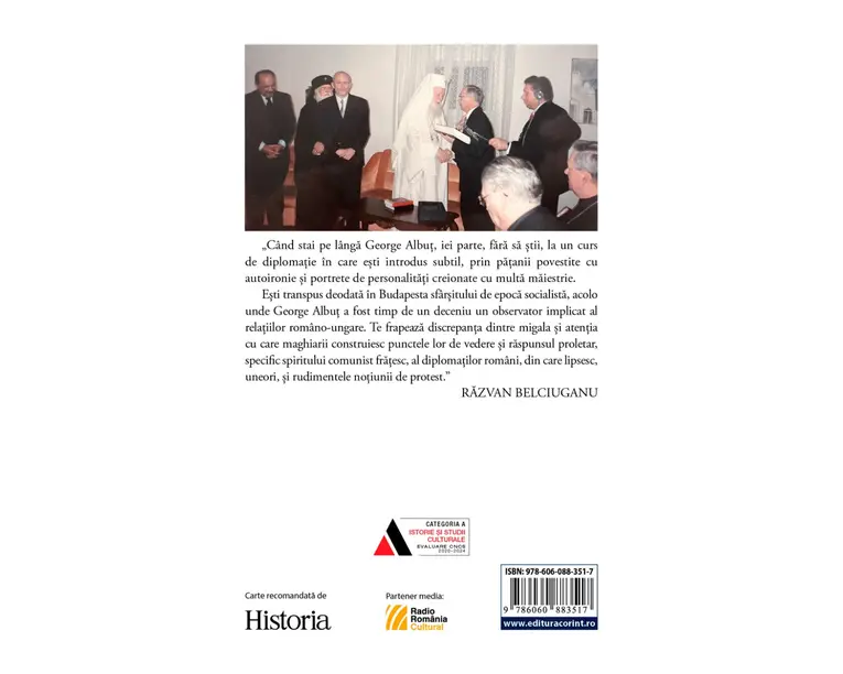 „Cand stai pe langa George Albut, iei parte, fara sa stii, la un curs de diplomatie in care esti introdus subtil, prin patanii povestite cu autoironie si portrete de personalitati creionate cu multa maiestrie. Esti transpus deodata in Budapesta sfarsitului de epoca socialista, acolo unde George Albut a fost timp un deceniu un observator implicat al relatiilor romano-ungare. Te frapeaza discrepanta dintre migala si atentia cu care maghiarii construiesc punctele lor de vedere si raspunsul proletar, specific spiritului comunist fratesc, cu care raspund romanii, din care lipseau, uneori, si rudimentele notiunii de protest.” RAZVAN BELCIUGANU „Incepand din 1987, ostilitatea fata de romani era deja fatisa, manifestandu-se nu doar fata de ambasada, confruntata cu demonstratii, unele de magnitudinea unor marsuri cu zeci de mii de participanti, ci si fata de turistii aflati in trecere prin Ungaria, molestati de politie, injurati de trecatori, admonestati cu antipatie in magazine. Autoturismele misiunii tarii noastre, usor de identificat (Dacii negre, ponosite, cu numere de corp diplomatic), erau frecvent zgariate cu lozinci iredentiste, telefoanele cu mesaje obscene si amenintari curgeau lant la ambasada, ziua si noaptea. Ofensiva anticeausista, pe care era grefata cu maiestrie propaganda antiromaneasca, era intretinuta de mass-media.” GEORGE ALBUT Produsul cu denumirea Un diplomat roman la Budapesta (19811990 si dupa aceea...) face parte din brandul Corint, se afla in categoria Carti de sanatate si subcategoria