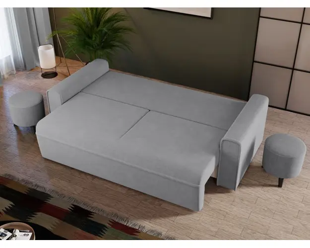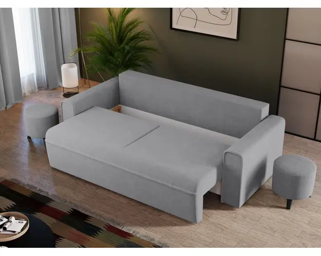 Canapea Blanca Coral 75 Canapea Blanca Coral 75 este o canapea extensibila caracterizata de linii simple si minimaliste , fiind usor de integrat in orice decor. Moderna si totodata eleganta, aceasta este si confortabila datorita celor doua perne mari detasabile si bratelor usor rotunjite. Printre cele mai importante functii ale canapelei este capacitatea de a se transforma intr-un pat confortabil de 190 x 145 cm . Este prevazuta cu lada de depozitare si are dimensiunile de: 230 cm lungime, 100 cm latime, 90 cm inaltime totala . Este tapitata cu o stofa premium uni pe diverse culori. Atentie: Pretul afisat nu include alte accesorii sau obiecte de decor. Taburetele, pernele deco si draperiile se pot achizitiona optional. Livrare gratuita si rapida, 4-10 zile lucratoare prin flota proprie Suntem producatori de tapiterii, fara intermediari Toate piesele de tapiterii au o garantie de 2 ani Sezutul si extensia canapelei sunt pe relaxa (arcuri elicoidale si poliuretan) . Scheletul este rezistent, realizat pe structura solida de fag si pal . Extensia este de tip Lift: partea de sezut se ridica si se trage in fata, permitand partii de spatar sa gliseze spre partea din fata si sa se pozitioneze orizontal. Canapea Blanca Coral 75 se incadreaza cu usurinta in majoritatea locuintelor indiferent de stilul acestora. Puteti alege din mai multe culori pentru stofa. Produsele disponibile le puteti vedea aici Modele Blanca . Dimensiuni Canapea Blanca Lungime: 230 cm Latime: 100 cm Inaltime sezut: 46 cm Inaltime totala: 90 cm Inaltime brate: 60 cm Grosime brate: 20 cm Adancime sezut cu perne: 60 cm Adancime sezut fara perne: 80 cm Inaltime picior: 3 cm Dimensiuni extinsa Lungime extinsa: 190 cm Adancime extinsa: 145 cm Tapiterie Canapea Blanca Coral 75 Tapiteria produsului este din stofa Gri Deschis - Coral 75 . Nuanta acestui produs nu este pretentioasa, mascheaza eventualele evenimente neplacute prin care se poate murdari sau pata si se integreaza perfect in majoritatea locuintelor. Intretinere: se recomanda ca praful sa se stearga cu un material textil moale (finet) umed si sa nu se curete cu agenti chimici (diluant, acetona). Imaginile sunt cu titlu de prezentare si pot avea mici diferente de nuante in functie de display. Dimensiunile sunt exprimate in centimetri si pot oscila intre ± 50 mm. Produsul cu denumirea Canapea Blanca Coral 75 face parte din brandul Mobila laguna, se afla in categoria Centrale mixte lemn si peleti si subcategoria