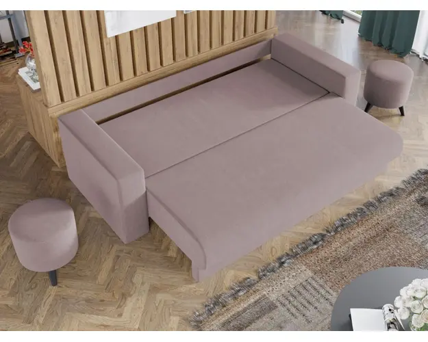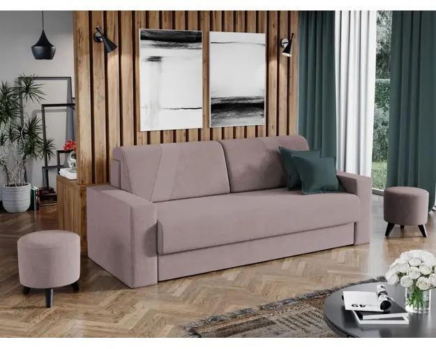Canapea Bravisimo Roze Canapea Bravisimo Roze este o canapea versatila, cu un design inedit, care iese in evidenta in orice sufragerie sau living. Datorita posibilitatii de extindere , obtineti un spatiu pentru odihna si relaxare cu suprafata utila de 148 x 190 cm . Aceasta este prevazuta si cu lada de depozitare , utila pentru a pastra lenjeria, pernele sau patura si pentru a pastra la indemana toate articolele frecvent utilizate. Este o canapea cu trei locuri , dimensiunile acesteia fiind de: 235 cm lungime, 100 cm latime, 90 cm inaltime totala. Este tapitata cu stofa de calitate pe diverse culori. Dungile pernelor sunt din stofa de aceeasi culoare ca si restul canapelei. Atentie: Pretul afisat nu include alte accesorii sau obiecte de decor. Taburetele, pernele deco si draperiile se pot achizitiona optional. Livrare gratuita si rapida, 4-10 zile lucratoare prin flota proprie Suntem producatori de tapiterii, fara intermediari Toate piesele de tapiterii au o garantie de 2 ani Sezutul si extensia canapelei sunt pe relaxa (arcuri elicoidale si poliuretan) . Scheletul este rezistent, realizat pe structura solida de fag si pal . Extensia este de tip Doppelliege, ce prezinta un sistem actionat prin role, astfel ca partea de sezut se trage si permite partii de spatar sa gliseze spre partea din fata si sa se pozitioneze orizontal. Canapea Bravisimo Roze se incadreaza cu usurinta in majoritatea locuintelor indiferent de stilul acestora. Puteti alege din mai multe culori pentru stofa. Produsele disponibile le puteti vedea aici Modele Bravisimo . Dimensiuni Canapea Bravisimo Roze Lungime: 235 cm Latime: 100 cm Lungime intre brate: 190 cm Inaltime sezut: 45 cm Inaltime: 90 cm Adancime sezut: 75 cm Inaltime brate: 60 cm Lungime brate: 92 cm Grosime brate: 21 cm Dimensiuni extinsa Lungime extinsa: 190 cm Adancime extinsa: 148 cm Tapiterie Canapea Bravisimo Roze Tapiteria produsului este din stofa Roze . Nuanta acestui produs nu este pretentioasa, mascheaza eventualele evenimente neplacute prin care se poate murdari sau pata si se integreaza perfect in majoritatea locuintelor. Intretinere: se recomanda ca praful sa se stearga cu un material textil moale (finet) umed si sa nu se curete cu agenti chimici (diluant, acetona). Imaginile sunt cu titlu de prezentare si pot avea mici diferente de nuante in functie de display. Dimensiunile sunt exprimate in centimetri si pot oscila intre ± 50 mm. Produsul cu denumirea Canapea Bravisimo Roze face parte din brandul Mobila laguna, se afla in categoria Centrale mixte lemn si peleti si subcategoria