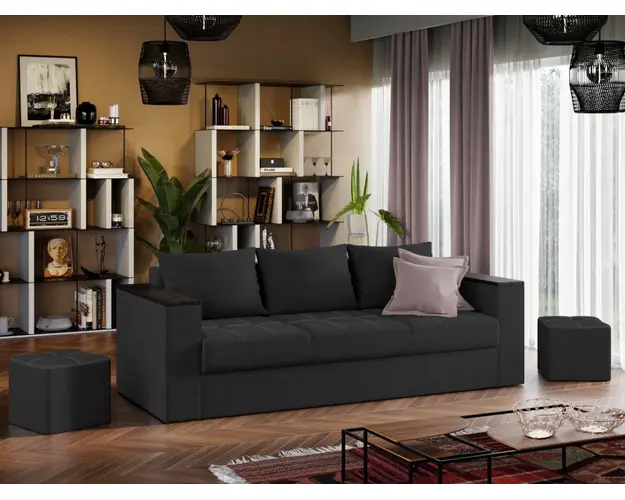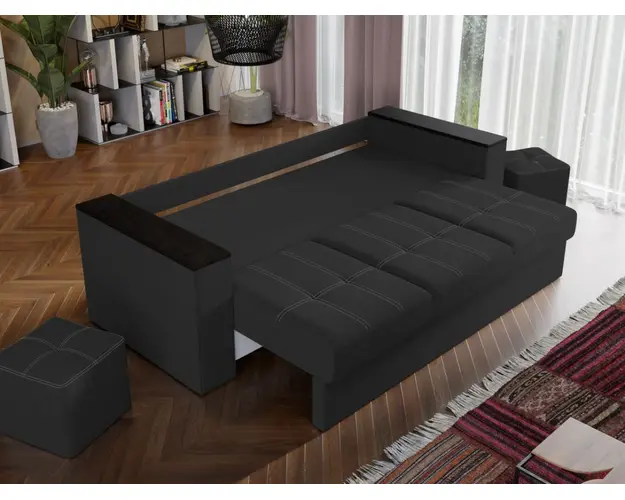 Canapea Dante L Gri Antracit Canapea Dante L Gri Antracit este o canapea cu stil care se remarca prin bratele cu insertii de lemn si prin cusaturile contrastante de pe sezut. Aceasta imbina stilul cu functionalitatea prin faptul ca este prevazuta cu lada ideala pentru depozitarea lenjeriei, a pernelor sau a paturii si pentru a pastra la indemana toate articolele frecvent utilizate. Canapeaua ofera confort prin cele 3 perne detasabile si se poate transforma intr-un pat cu suprafata utila de 190 x 150 cm in doar cateva minute.Acesta are dimensiunea de: 235 cm lungime, 96 cm latime, 77 cm inaltime totala . Este tapitata cu stofa de calitate pe diverse culori. Atentie: Pretul afisat nu include alte accesorii sau obiecte de decor. Taburetele, pernele deco si draperiile se pot achizitiona optional. Livrare gratuita si rapida, 4-10 zile lucratoare prin flota proprie Suntem producatori de tapiterii, fara intermediari Toate piesele de tapiterii au o garantie de 2 ani Sezutul si extensia canapelei sunt pe relaxa (arcuri elicoidale si poliuretan) . Scheletul este rezistent, realizat pe structura solida de fag si pal . Extensia este de tip Doppelliege, ce prezinta un sistem actionat prin role, astfel ca partea de sezut se trage si permite partii de spatar sa gliseze spre partea din fata si sa se pozitioneze orizontal. Canapea Dante L Gri Antracit se incadreaza cu usurinta in majoritatea locuintelor indiferent de stilul acestora. Puteti alege din mai multe culori pentru stofa. Produsele disponibile le puteti vedea aici Modele Dante L . Dimensiuni Canapea Dante L Gri Antracit Lungime: 235 cm Latime: 96 cm Lungime intre brate: 190 cm Inaltime sezut: 45 cm Inaltime: 77 cm Adancime sezut: 76 cm Dimensiuni extinsa Lungime extinsa: 190 cm Adancime extinsa: 150 cm Dimensiuni brate Lungime brate: 91 cm Inaltime brate: 61 cm Grosime brate: 20 cm Tapiterie Canapea Dante L Gri Antracit Tapiteria produsului este din stofa Gri Antracit . Nuanta acestui produs nu este pretentioasa, mascheaza eventualele evenimente neplacute prin care se poate murdari sau pata si se integreaza perfect in majoritatea locuintelor. Intretinere: se recomanda ca praful sa se stearga cu un material textil moale (finet) umed si sa nu se curete cu agenti chimici (diluant, acetona). Imaginile sunt cu titlu de prezentare si pot avea mici diferente de nuante in functie de display. Dimensiunile sunt exprimate in centimetri si pot oscila intre ± 50 mm. Produsul cu denumirea Canapea Dante L Gri Antracit face parte din brandul Mobila laguna, se afla in categoria Centrale mixte lemn si peleti si subcategoria