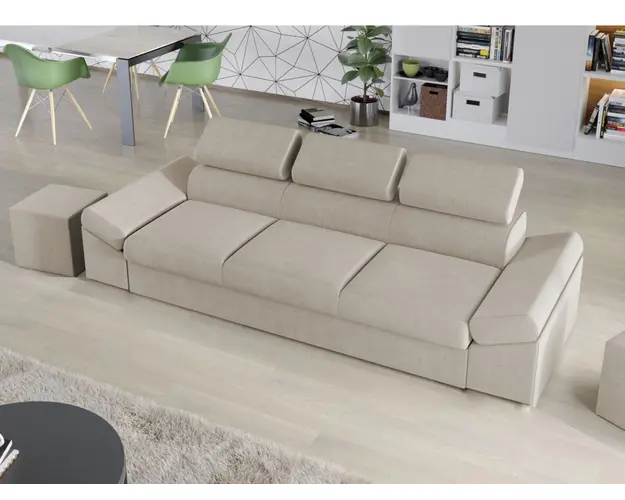 Canapea Extensibila Magic Crem Canapea Extensibila Magic Crem este un model elegant, confortabil si incapator, caracterizat de forme moderne si simple. Imbina cu succes functionalitatea cu designul, transformandu-se rapid intr-un pat confortabil de 185 x 125 cm . Poti avea parte de relaxare completa si un confort sporit, gratie tetierelor reglabile , care ofera sustinere corpului tau exact in pozitia dorita. Este potrivita pentru un living cu dimensiuni generoase, avand dimensiunea de: 250 cm lungime, 90 cm latime, 90 cm inaltime totala . Este tapitata cu stofa de calitate pe diverse culori. Atentie: Pretul afisat nu include alte accesorii sau obiecte de decor. Taburetele, pernele deco si draperiile se pot achizitiona optional. Livrare gratuita si rapida, 4-10 zile lucratoare prin flota proprie Suntem producatori de tapiterii, fara intermediari Toate piesele de tapiterii au o garantie de 2 ani Sezutul contine arcuri elicoidale, arc sinusoidal si poliuretan, iar extensia este realizata din poliuretan . Scheletul este rezistent, realizat pe structura solida de fag si pal . Extensia de tip sertar este pozitionata sub sezutul canapelei. Se deschide ca un sertar, apoi se ridica salteaua din interiorul acestuia. Canapea Extensibila Magic Crem se incadreaza cu usurinta in majoritatea locuintelor indiferent de stilul acestora. Puteti alege din mai multe culori pentru stofa. Produsele disponibile le puteti vedea aici Modele Magic . Dimensiuni Canapea: Lungime: 250 cm Latime: 90 cm Lungime intre brate: 185 cm Inaltime sezut: 44 cm Adancime sezut: 55 cm Inaltime totala: 90 cm Dimensiuni extinsa Lungime extinsa: 185 cm Adancime extinsa: 125 cm Tapiterie Canapea Extensibila Magic Crem Tapiteria este din stofa Crem . Nuanta acestui produs nu este pretentioasa, mascheaza eventualele evenimente neplacute prin care se poate murdari sau pata si se integreaza perfect in majoritatea locuintelor. Intretinere: se recomanda ca praful sa se stearga cu un material textil moale (finet) umed si sa nu se curete cu agenti chimici (diluant, acetona). Imaginile sunt cu titlu de prezentare si pot avea mici diferente de nuante in functie de display. Dimensiunile sunt exprimate in centimetri si pot oscila intre ± 50 mm. Produsul cu denumirea Canapea Extensibila Magic Crem face parte din brandul Mobila laguna, se afla in categoria Centrale mixte lemn si peleti si subcategoria