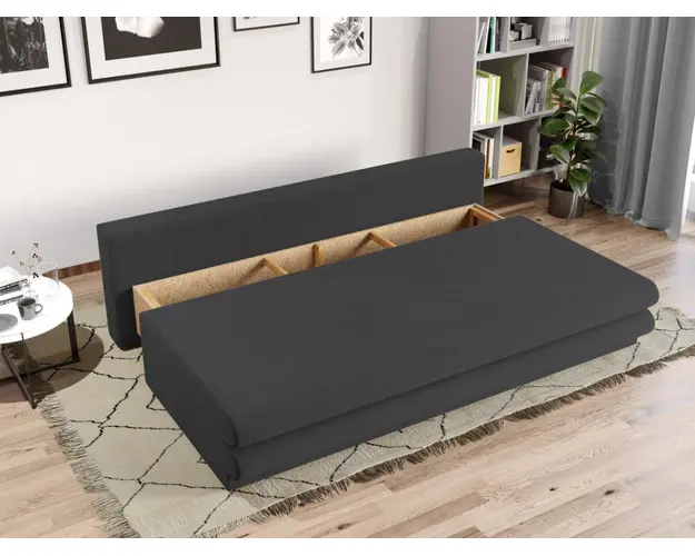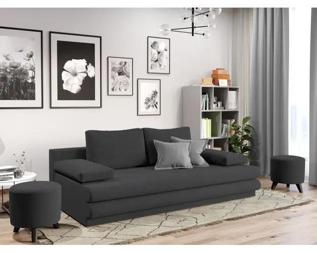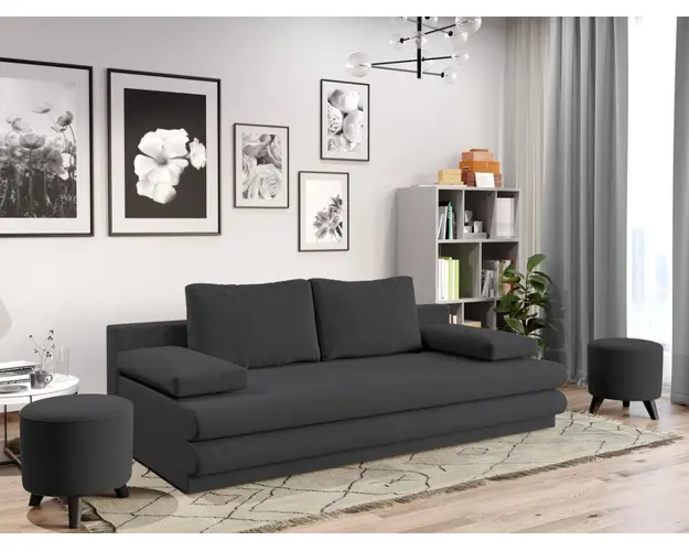 Canapea Extensibila Sensi Gri Antracit Canapea Extensibila Sensi Gri Antracit este o piesa de mobilier moderna, ideala pentru orice camera de zi, adaugand un plus de rafinament si confort in orice incapere. Formele sale rotunjite ofera un design elegant, iar cele doua perne si bratele laterale detasabile ofera sustinere corpului exact in pozitia dorita. Aceasta canapea are dimensiuni medii, cu o lungime de 190 cm , o latime de 102 cm si o inaltime totala de 85 cm . Deasemenea, datorita posibilitatii de extindere , obtineti un spatiu pentru odihna si relaxare, cu o suprafata utila de 190 x 145 cm . Lada incorporata este ideala pentru depozitarea lenjeriei, a pernelor sau a paturii, astfel incat sa aveti la indemana toate articolele frecvent utilizate. Este tapitata cu stofa de calitate pe diverse culori. Atentie: Pretul afisat nu include alte accesorii sau obiecte de decor. Taburetele, pernele deco si draperiile se pot achizitiona optional. Livrare gratuita si rapida, 4-10 zile lucratoare prin flota proprie Suntem producatori de tapiterii, fara intermediari Toate piesele de tapiterii au o garantie de 2 ani Sezutul si extensia canapelei sunt pe relaxa (arcuri elicoidale si poliuretan) . Scheletul este rezistent, realizat pe structura solida de fag si pal. Extensia este de tip Doppelliege, ce prezinta un sistem actionat prin role, astfel ca partea de sezut se trage si permite partii de spatar sa gliseze spre partea din fata si sa se pozitioneze orizontal. Canapea Extensibila Sensi Gri Antracit se incadreaza cu usurinta in majoritatea locuintelor indiferent de stilul acestora. Puteti alege din mai multe culori pentru stofa. Produsele disponibile le puteti vedea aici Modele Sensi . Dimensiuni Canapea Sensi Lungime: 190 cm Latime: 102 cm Lungime intre brate: 130 cm Inaltime sezut: 42 cm Inaltime: 85 cm Adancime sezut fara perne: 85 cm Adancime sezut cu perne: 65 cm Dimensiuni extinsa Lungime extinsa: 190 cm Adancime extinsa: 145 cm Tapiterie Canapea Extensibila Sensi Gri Antracit Tapiteria produsului este din stofa Gri Antracit. Nuanta acestui produs nu este pretentioasa, mascheaza eventualele evenimente neplacute prin care se poate murdari sau pata si se integreaza perfect in majoritatea locuintelor. Intretinere: se recomanda ca praful sa se stearga cu un material textil moale (finet) umed si sa nu se curete cu agenti chimici (diluant, acetona). Imaginile sunt cu titlu de prezentare si pot avea mici diferente de nuante in functie de display. Dimensiunile sunt exprimate in centimetri si pot oscila intre ± 50 mm. Produsul cu denumirea Canapea Extensibila Sensi Gri Antracit face parte din brandul Mobila laguna, se afla in categoria Centrale mixte lemn si peleti si subcategoria