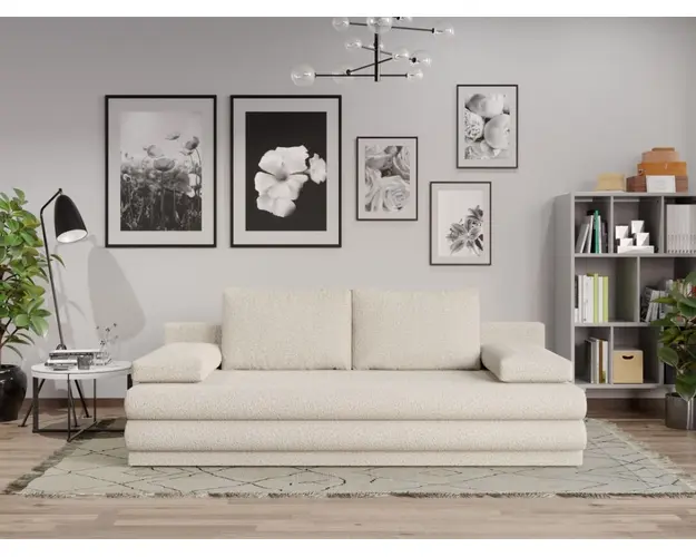 Canapea Extensibila Sensi plusata aspect lana alba Canapea Extensibila Sensi plusata aspect lana alba este o piesa de mobilier moderna, ideala pentru orice camera de zi, adaugand un plus de rafinament si confort in orice incapere. Formele sale rotunjite ofera un design elegant, iar cele doua perne si bratele laterale detasabile ofera sustinere corpului exact in pozitia dorita. Aceasta canapea are dimensiuni medii, cu o lungime de 190 cm , o latime de 102 cm si o inaltime totala de 85 cm . Deasemenea, datorita posibilitatii de extindere , obtineti un spatiu pentru odihna si relaxare, cu o suprafata utila de 190 x 145 cm . Lada incorporata este ideala pentru depozitarea lenjeriei, a pernelor sau a paturii, astfel incat sa aveti la indemana toate articolele frecvent utilizate. Este tapitata cu stofa de calitate pe diverse culori. Atentie: Pretul afisat nu include alte accesorii sau obiecte de decor. Taburetele, pernele deco si draperiile se pot achizitiona optional. Livrare gratuita si rapida, 4-10 zile lucratoare prin flota proprie Suntem producatori de tapiterii, fara intermediari Toate piesele de tapiterii au o garantie de 2 ani Sezutul si extensia canapelei sunt pe relaxa (arcuri elicoidale si poliuretan) . Scheletul este rezistent, realizat pe structura solida de fag si pal. Extensia este de tip Doppelliege, ce prezinta un sistem actionat prin role, astfel ca partea de sezut se trage si permite partii de spatar sa gliseze spre partea din fata si sa se pozitioneze orizontal. Canapea Extensibila Sensi plusata aspect lana alba se incadreaza cu usurinta in majoritatea locuintelor indiferent de stilul acestora. Puteti alege din mai multe culori pentru stofa. Produsele disponibile le puteti vedea aici Modele Sensi . Dimensiuni Canapea Sensi Lungime: 190 cm Latime: 102 cm Lungime intre brate: 130 cm Inaltime sezut: 42 cm Inaltime: 85 cm Adancime sezut fara perne: 85 cm Adancime sezut cu perne: 65 cm Dimensiuni extinsa Lungime extinsa: 190 cm Adancime extinsa: 145 cm Tapiterie Canapea Extensibila Sensi plusata aspect lana alba Tapiteria produsului este din stofa plusata cu aspect de lana alba. Nuanta acestui produs nu este pretentioasa, mascheaza eventualele evenimente neplacute prin care se poate murdari sau pata si se integreaza perfect in majoritatea locuintelor. Intretinere: se recomanda ca praful sa se stearga cu un material textil moale (finet) umed si sa nu se curete cu agenti chimici (diluant, acetona). Imaginile sunt cu titlu de prezentare si pot avea mici diferente de nuante in functie de display. Dimensiunile sunt exprimate in centimetri si pot oscila intre ± 50 mm. Produsul cu denumirea Canapea Extensibila Sensi plusata aspect lana alba face parte din brandul Mobila laguna, se afla in categoria Centrale mixte lemn si peleti si subcategoria