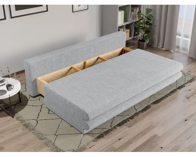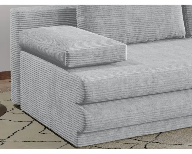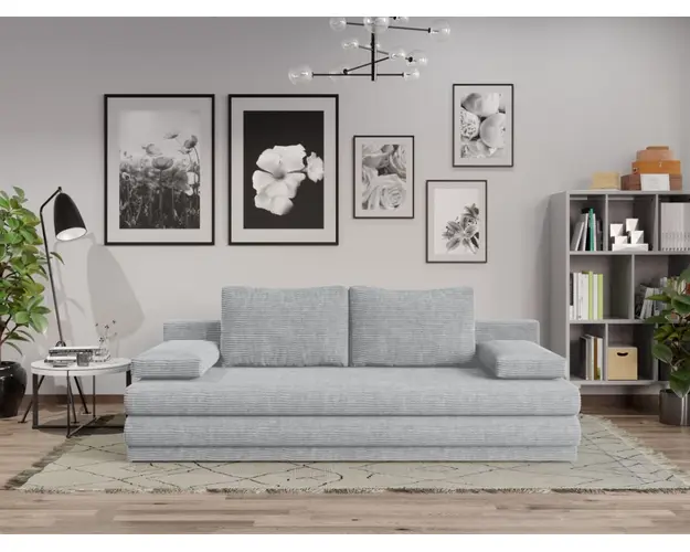 Canapea Extensibila Sensi reiat Zoom New 20 Canapea Extensibila Sensi reiat Zoom New 20 este o piesa de mobilier moderna, ideala pentru orice camera de zi, adaugand un plus de rafinament si confort in orice incapere. Formele sale rotunjite ofera un design elegant, iar cele doua perne si bratele laterale detasabile ofera sustinere corpului exact in pozitia dorita. Aceasta canapea are dimensiuni medii, cu o lungime de 190 cm , o latime de 102 cm si o inaltime totala de 85 cm . Deasemenea, datorita posibilitatii de extindere , obtineti un spatiu pentru odihna si relaxare, cu o suprafata utila de 190 x 145 cm . Lada incorporata este ideala pentru depozitarea lenjeriei, a pernelor sau a paturii, astfel incat sa aveti la indemana toate articolele frecvent utilizate. Este tapitata cu stofa de calitate pe diverse culori. Atentie: Pretul afisat nu include alte accesorii sau obiecte de decor. Taburetele, pernele deco si draperiile se pot achizitiona optional. Livrare gratuita si rapida, 4-10 zile lucratoare prin flota proprie Suntem producatori de tapiterii, fara intermediari Toate piesele de tapiterii au o garantie de 2 ani Sezutul si extensia canapelei sunt pe relaxa (arcuri elicoidale si poliuretan) . Scheletul este rezistent, realizat pe structura solida de fag si pal. Extensia este de tip Doppelliege, ce prezinta un sistem actionat prin role, astfel ca partea de sezut se trage si permite partii de spatar sa gliseze spre partea din fata si sa se pozitioneze orizontal. Canapea Extensibila Sensi reiat Zoom New 20 se incadreaza cu usurinta in majoritatea locuintelor indiferent de stilul acestora. Puteti alege din mai multe culori pentru stofa. Produsele disponibile le puteti vedea aici Modele Sensi . Videoclipul poate contine alta nuanta decat cea de pe pagina produsului, acesta avand ca scop prezentarea familiei pentru a se reda in detaliu aspectul materialului. Dimensiuni Canapea Sensi Lungime: 190 cm Latime: 102 cm Lungime intre brate: 130 cm Inaltime sezut: 42 cm Inaltime: 85 cm Adancime sezut fara perne: 85 cm Adancime sezut cu perne: 65 cm Dimensiuni extinsa Lungime extinsa: 190 cm Adancime extinsa: 145 cm Tapiterie Canapea Extensibila Sensi reiat Zoom New 20 Tapiteria produsului este din stofa reiat gri deschis - Zoom New 20. Nuanta acestui produs nu este pretentioasa, mascheaza eventualele evenimente neplacute prin care se poate murdari sau pata si se integreaza perfect in majoritatea locuintelor. Intretinere: se recomanda ca praful sa se stearga cu un material textil moale (finet) umed si sa nu se curete cu agenti chimici (diluant, acetona). Imaginile sunt cu titlu de prezentare si pot avea mici diferente de nuante in functie de display. Dimensiunile sunt exprimate in centimetri si pot oscila intre ± 50 mm. Produsul cu denumirea Canapea Extensibila Sensi reiat Zoom New 20 face parte din brandul Mobila laguna, se afla in categoria Centrale mixte lemn si peleti si subcategoria