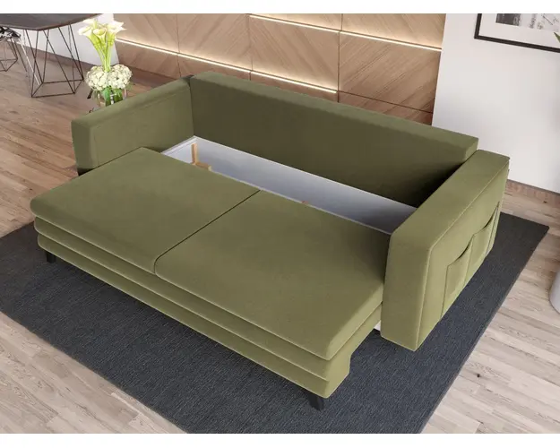 Canapea Leto 38 Olive Canapea Leto 38 Olive este un model de canapea cu un design aparte si un rafinament desavarsit. Ofera un confort sporit dat de pernele detasabile mari si mici, cat si utilitate prin posibilitatea de extindere si prin lada de depozitare . Este recomandata atat pentru incaperi mici sau mari si are dimensiunea de: 230 cm lungime, 105 cm latime, 90 cm inaltime totala . Pe bratele canapelei Leto sunt pozitionate cate doua buzunare , care pot fi de un real ajutor pentru obiecte ca telecomanda, telefon, carti, ochelari sau alte lucruri ce doriti sa fie mereu in apropiere. Dupa extindere, obtineti un spatiu pentru odihna si relaxare, cu suprafata utila 190 x 150 cm . Picioarele negre si aspectul rotunjit al fetei de lada si al sezutului dau un aspect elegant si impunator in orice locuinta. Este tapitata cu o stofa premium uni pe diverse culori. Livrare gratuita si rapida, 4-10 zile lucratoare prin flota proprie Suntem producatori de tapiterii, fara intermediari Toate piesele de tapiterii au o garantie de 2 ani Videoclipul contine alta nuanta decat cea de pe pagina produsului, acesta avand ca scop prezentarea familiei pentru a se reda in detaliu aspectul materialului. Sezutul si extensia canapelei sunt pe relaxa (arcuri elicoidale si poliuretan) . Lada incorporata este ideala pentru depozitarea lenjeriei sau a altor obiecte. Scheletul este rezistent, realizat pe structura solida de fag si pal. Extensia este de tip Doppelliege ce prezinta un sistem actionat prin role, astfel ca partea de sezut se trage si permite partii de spatar sa gliseze spre partea din fata si sa se pozitioneze orizontal. Canapea Leto 38 Olive se incadreaza cu usurinta in majoritatea locuintelor indiferent de stilul acestora. Puteti alege din mai multe culori pentru stofa. Produsele disponibile le puteti vedea aici Modele Leto . Dimensiuni Canapea Leto Lungime: 230 cm Latime: 105 cm Lungime intre brate: 190 cm Inaltime sezut: 46 cm Adancime sezut: 85 cm (fara perne) Adancime sezut: 60 cm (pana in perne) Inaltime cu perne: 90 cm Inaltime fara perne: 75 cm Dimensiuni extins Lungime extins: 190 cm Adancime extins: 150 cm Dimensiuni brate Inaltime brate: 67 cm Lungime brate: 105 cm Tapiterie Canapea Leto Tapiteria produsului este din stofa Olive . Nuanta acestui produs nu este pretentioasa, mascheaza eventualele evenimente neplacute prin care se poate murdari sau pata si se integreaza perfect in majoritatea locuintelor. Intretinere: se recomanda ca praful sa se stearga cu un material textil moale (finet) umed si sa nu se curete cu agenti chimici (diluant, acetona). Imaginile sunt cu titlu de prezentare si pot avea mici diferente de nuante in functie de display. Dimensiunile sunt exprimate in centimetri si pot oscila intre ± 50 mm. Produsul cu denumirea Canapea Leto 38 Olive face parte din brandul Mobila laguna, se afla in categoria Canapea santorini si subcategoria