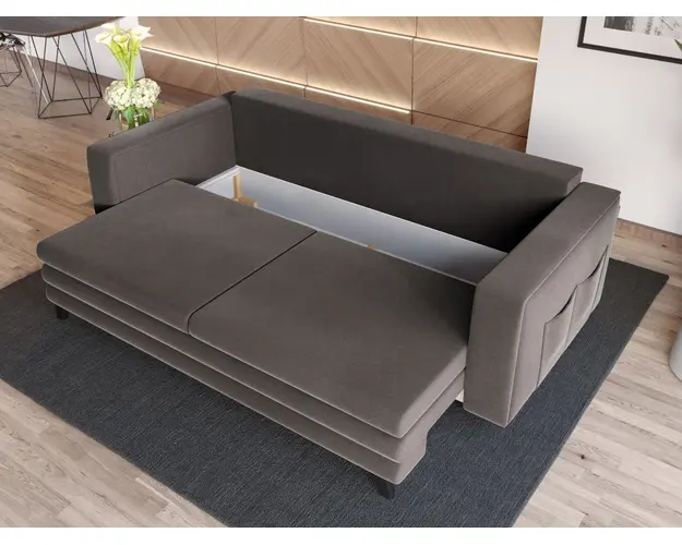 Canapea Leto 92 Cappuccino Canapea Leto 92 Cappuccino este un model de canapea cu un design aparte si un rafinament desavarsit. Ofera un confort sporit dat de pernele detasabile mari si mici, cat si utilitate prin posibilitatea de extindere si prin lada de depozitare . Este recomandata atat pentru incaperi mici sau mari si are dimensiunea de: 230 cm lungime, 105 cm latime, 90 cm inaltime totala . Pe bratele canapelei Leto sunt pozitionate cate doua buzunare , care pot fi de un real ajutor pentru obiecte ca telecomanda, telefon, carti, ochelari sau alte lucruri ce doriti sa fie mereu in apropiere. Dupa extindere, obtineti un spatiu pentru odihna si relaxare, cu suprafata utila 190 x 150 cm . Picioarele negre si aspectul rotunjit al fetei de lada si al sezutului dau un aspect elegant si impunator in orice locuinta. Este tapitata cu o stofa premium uni pe diverse culori. Livrare gratuita si rapida, 4-10 zile lucratoare prin flota proprie Suntem producatori de tapiterii, fara intermediari Toate piesele de tapiterii au o garantie de 2 ani Videoclipul contine alta nuanta decat cea de pe pagina produsului, acesta avand ca scop prezentarea familiei pentru a se reda in detaliu aspectul materialului. Sezutul si extensia canapelei sunt pe relaxa (arcuri elicoidale si poliuretan) . Lada incorporata este ideala pentru depozitarea lenjeriei sau a altor obiecte. Scheletul este rezistent, realizat pe structura solida de fag si pal. Extensia este de tip Doppelliege ce prezinta un sistem actionat prin role, astfel ca partea de sezut se trage si permite partii de spatar sa gliseze spre partea din fata si sa se pozitioneze orizontal. Canapea Leto 92 Cappuccino se incadreaza cu usurinta in majoritatea locuintelor indiferent de stilul acestora. Puteti alege din mai multe culori pentru stofa. Produsele disponibile le puteti vedea aici Modele Leto . Dimensiuni Canapea Leto Lungime: 230 cm Latime: 105 cm Lungime intre brate: 190 cm Inaltime sezut: 46 cm Adancime sezut: 85 cm (fara perne) Adancime sezut: 60 cm (pana in perne) Inaltime cu perne: 90 cm Inaltime fara perne: 75 cm Dimensiuni extins Lungime extins: 190 cm Adancime extins: 150 cm Dimensiuni brate Inaltime brate: 67 cm Lungime brate: 105 cm Tapiterie Canapea Leto Tapiteria produsului este din stofa Cappuccino . Nuanta acestui produs nu este pretentioasa, mascheaza eventualele evenimente neplacute prin care se poate murdari sau pata si se integreaza perfect in majoritatea locuintelor. Intretinere: se recomanda ca praful sa se stearga cu un material textil moale (finet) umed si sa nu se curete cu agenti chimici (diluant, acetona). Imaginile sunt cu titlu de prezentare si pot avea mici diferente de nuante in functie de display. Dimensiunile sunt exprimate in centimetri si pot oscila intre ± 50 mm. Produsul cu denumirea Canapea Leto 92 Cappuccino face parte din brandul Mobila laguna, se afla in categoria Canapea santorini si subcategoria