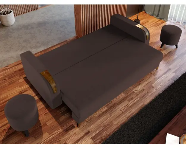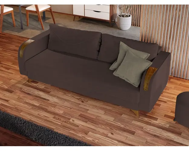 Canapea Londa Maro Canapea Londa Maro combina stilul si confortul, fiind alegerea potrivita pentru locuinta dumneavoastra. Picioarele si insertiile de culoarea lemnului de pe brate completeaza eleganta acestei canapele. Pe langa aspect, ofera confort prin cele 2 perne detasabile, cat si prin faptul ca se poate transforma rapid intr-un pat ce are lada de depozitare dedesubt. Este recomandata atat pentru incaperi medii, cat si mari si are dimensiunile de: 220 cm lungime, 95 cm latime, 83 cm inaltime totala . Dupa extindere, obtineti un spatiu pentru odihna si relaxare, cu suprafata utila 190 x 140 cm . Este tapitata cu o stofa de calitate uni pe diverse culori. Atentie: Pretul afisat nu include alte accesorii sau obiecte de decor. Taburetele, pernele deco si draperiile se pot achizitiona optional. Livrare gratuita si rapida, 4-10 zile lucratoare prin flota proprie Suntem producatori de tapiterii, fara intermediari Toate piesele de tapiterii au o garantie de 2 ani Sezutul si extensia canapelei sunt pe relaxa (arcuri elicoidale si poliuretan) . Scheletul este rezistent, realizat pe structura solida de fag si pal. Extensia este de tip Doppelliege ce prezinta un sistem actionat prin role, astfel ca partea de sezut se trage si permite partii de spatar sa gliseze spre partea din fata si sa se pozitioneze orizontal. Canapea Londa Maro se incadreaza cu usurinta in majoritatea locuintelor indiferent de stilul acestora. Puteti alege din mai multe culori pentru stofa. Produsele disponibile le puteti vedea aici Modele Londa . Videoclipul poate contine alta nuanta decat cea de pe pagina produsului, acesta avand ca scop prezentarea familiei pentru a se reda in detaliu aspectul materialului. Dimensiuni Canapea Londa Lungime: 220 cm Latime: 95 cm Lungime intre brate: 190 cm Inaltime sezut: 42 cm Inaltime: 83 cm Adancime sezut cu perne: 55 cm Adancime sezut fara perne: 80 cm Inaltime picioare: 10 cm Dimensiuni extinsa Lungime extinsa: 190 cm Adancime extinsa: 140 cm Tapiterie Canapea Londa Maro Tapiteria produsului este din stofa Maro. Nuanta acestui produs nu este pretentioasa, mascheaza eventualele evenimente neplacute prin care se poate murdari sau pata si se integreaza perfect in majoritatea locuintelor. Intretinere: se recomanda ca praful sa se stearga cu un material textil moale (finet) umed si sa nu se curete cu agenti chimici (diluant, acetona). Imaginile sunt cu titlu de prezentare si pot avea mici diferente de nuante in functie de display. Dimensiunile sunt exprimate in centimetri si pot oscila intre ± 50 mm. Produsul cu denumirea Canapea Londa Maro face parte din brandul Mobila laguna, se afla in categoria Centrale mixte lemn si peleti si subcategoria