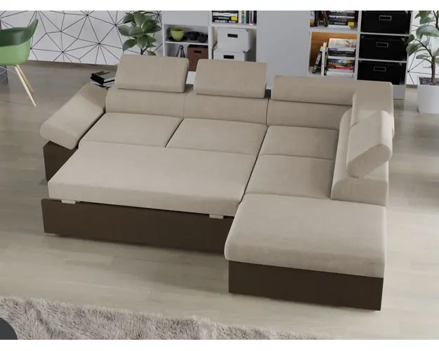 Coltar Aria Crem / Maro Coltar Aria Crem / Maro este un model elegant, confortabil si incapator, caracterizat de forme moderne si simple. Imbina cu succes functionalitatea cu designul, transformandu-se rapid intr-un pat confortabil de 190 x 125 cm . Este prevazut cu lada pentru depozitare pozitionata sub sezlong, care poate fi accesata prin ridicarea partii superioare a acestuia. Poti avea parte de relaxare completa si un confort sporit, gratie bratului si tetierelor reglabile , care ofera sustinere corpului tau exact in pozitia dorita. Este potrivit pentru un living cu dimensiuni generoase, avand dimensiunea de: 260 cm lungime, 205 cm latime, 90 cm inaltime totala . Este tapitat cu stofa de calitate pe diverse culori. Atentie: Pretul afisat nu include alte accesorii sau obiecte de decor. Taburetele, pernele deco si draperiile se pot achizitiona optional. Livrare gratuita si rapida, 4-10 zile lucratoare prin flota proprie Suntem producatori de tapiterii, fara intermediari Toate piesele de tapiterii au o garantie de 2 ani Sezutul este din relaxa (arc sinusoidal, arc elicoidal si poliuretan) , iar extensia este din poliuretan . Scheletul este rezistent, realizat pe structura solida de fag si pal. Extensia de tip sertar este pozitionata sub sezutul coltarului. Se deschide ca un sertar, apoi se ridica salteaua din interiorul acestuia. Coltar Aria Crem / Maro se incadreaza cu usurinta in majoritatea locuintelor indiferent de stilul acestora. Puteti alege din mai multe culori pentru stofa. Produsele disponibile le puteti vedea aici Modele Aria . Dimensiuni Coltar Aria Lungime: 260 cm Latime: 205 cm Lungime intre brate: 190 cm Inaltime sezut: 46 cm Inaltime : 90 cm Adancime sezut: 56 cm Adancime selon 170 cm Latime sezlon 93 cm Dimensiuni extinsa Lungime extinsa: 190 cm Adancime extinsa: 125 cm Tapiterie Coltar Aria Crem / Maro Tapiteria produsului este din stofa Crem si Maro. Nuantele acestui produs nu sunt pretentioase, mascheaza eventualele evenimente neplacute prin care se pot murdari sau pata si se integreaza perfect in majoritatea locuintelor. Intretinere: se recomanda ca praful sa se stearga cu un material textil moale (finet) umed si sa nu se curete cu agenti chimici (diluant, acetona). Imaginile sunt cu titlu de prezentare si pot avea mici diferente de nuante in functie de display. Dimensiunile sunt exprimate in centimetri si pot oscila intre ± 50 mm. Produsul cu denumirea Coltar Aria Crem / Maro face parte din brandul Mobila laguna, se afla in categoria Canapele extensibile si subcategoria