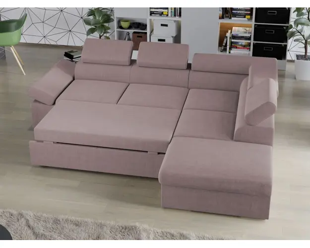 Coltar Aria Roze Coltar Aria Roze este un model elegant, confortabil si incapator, caracterizat de forme moderne si simple. Imbina cu succes functionalitatea cu designul, transformandu-se rapid intr-un pat confortabil de 190 x 125 cm . Este prevazut cu lada pentru depozitare pozitionata sub sezlong, care poate fi accesata prin ridicarea partii superioare a acestuia. Poti avea parte de relaxare completa si un confort sporit, gratie bratului si tetierelor reglabile , care ofera sustinere corpului tau exact in pozitia dorita. Este potrivit pentru un living cu dimensiuni generoase, avand dimensiunea de: 260 cm lungime, 205 cm latime, 90 cm inaltime totala . Este tapitat cu stofa de calitate pe diverse culori. Atentie: Pretul afisat nu include alte accesorii sau obiecte de decor. Taburetele, pernele deco si draperiile se pot achizitiona optional. Livrare gratuita si rapida, 4-10 zile lucratoare prin flota proprie Suntem producatori de tapiterii, fara intermediari Toate piesele de tapiterii au o garantie de 2 ani Sezutul este din relaxa (arc sinusoidal, arc elicoidal si poliuretan) , iar extensia este din poliuretan . Scheletul este rezistent, realizat pe structura solida de fag si pal. Extensia de tip sertar este pozitionata sub sezutul coltarului. Se deschide ca un sertar, apoi se ridica salteaua din interiorul acestuia. Coltar Aria Roze se incadreaza cu usurinta in majoritatea locuintelor indiferent de stilul acestora. Puteti alege din mai multe culori pentru stofa. Produsele disponibile le puteti vedea aici Modele Aria . Dimensiuni Coltar Aria Lungime: 260 cm Latime: 205 cm Lungime intre brate: 190 cm Inaltime sezut: 46 cm Inaltime : 90 cm Adancime sezut: 56 cm Adancime selon 170 cm Latime sezlon 93 cm Dimensiuni extinsa Lungime extinsa: 190 cm Adancime extinsa: 125 cm Tapiterie Coltar Aria Roze Tapiteria produsului este din stofa Roze. Nuanta acestui produs nu este pretentioasa, mascheaza eventualele evenimente neplacute prin care se poate murdari sau pata si se integreaza perfect in majoritatea locuintelor. Intretinere: se recomanda ca praful sa se stearga cu un material textil moale (finet) umed si sa nu se curete cu agenti chimici (diluant, acetona). Imaginile sunt cu titlu de prezentare si pot avea mici diferente de nuante in functie de display. Dimensiunile sunt exprimate in centimetri si pot oscila intre ± 50 mm. Produsul cu denumirea Coltar Aria Roze face parte din brandul Mobila laguna, se afla in categoria Canapele extensibile si subcategoria