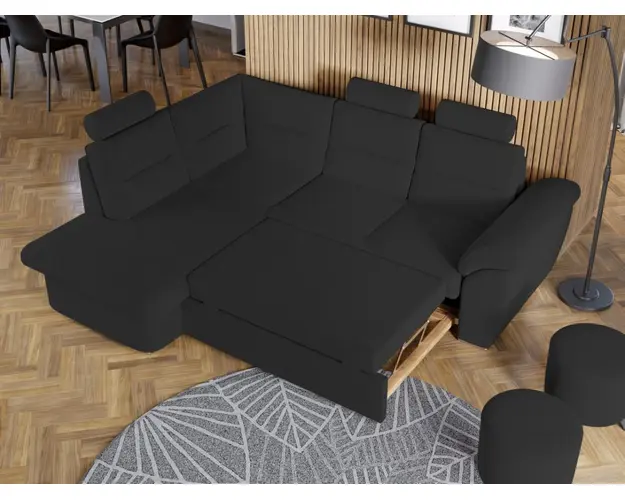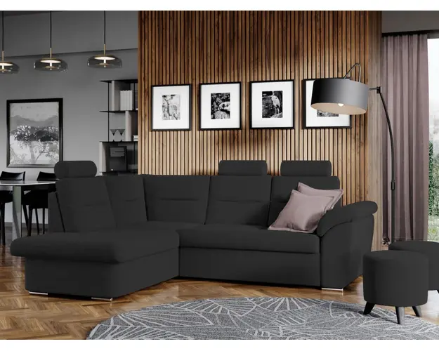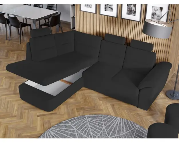 Coltar Biano Gri Antracit Coltar Biano Gri Antracit are un design modern , contemporan si un aspect impunator, caracterizat de forme rotunjite si simple. Imbina cu succes functionalitatea cu designul, transformandu-se rapid intr-un pat confortabil de 182 x 127 cm . Este prevazut cu lada pentru depozitare pozitionata sub sezlong, care poate fi accesata prin ridicarea partii superioare a acestuia. Poti avea parte de relaxare completa si un confort sporit, gratie tetierelor reglabile , spatarului si bratului care ofera sustinere corpului tau exact in pozitia dorita. Este potrivit pentru un living cu dimensiuni generoase, avand dimensiunea de: 245 cm lungime, 184 cm latime, 106 cm inaltime totala . Este tapitat cu stofa de calitate pe diverse culori. Atentie: Pretul afisat nu include alte accesorii sau obiecte de decor. Taburetele, pernele deco si draperiile se pot achizitiona optional. Livrare gratuita si rapida, 4-10 zile lucratoare prin flota proprie Suntem producatori de tapiterii, fara intermediari Toate piesele de tapiterii au o garantie de 2 ani Sezutul si extensia coltarului sunt din poliuretan High Resilience . Scheletul este rezistent, realizat pe structura solida de fag si pal. Extensia de tip sertar este pozitionata sub sezutul coltarului. Se deschide ca un sertar, apoi se ridica salteaua din interiorul acestuia. Coltar Biano Gri Antracit se incadreaza cu usurinta in majoritatea locuintelor indiferent de stilul acestora. Puteti alege din mai multe culori pentru stofa. Produsele disponibile le puteti vedea aici Modele Biano . Dimensiuni Coltar Biano Lungime: 245 cm Latime: 184 cm Lungime intre brate: 182 cm Inaltime sezut: 43 cm Inaltime : 106 cm Adancime sezut: 60 cm Adancime selon 152 cm Latime sezlon 98 cm Dimensiuni extinsa Lungime extinsa: 182 cm Adancime extinsa: 127 cm Tapiterie Coltar Biano Gri Antracit Tapiteria produsului este din stofa Gri Antracit. Nuanta acestui produs nu este pretentioasa, mascheaza eventualele evenimente neplacute prin care se poate murdari sau pata si se integreaza perfect in majoritatea locuintelor. Intretinere: se recomanda ca praful sa se stearga cu un material textil moale (finet) umed si sa nu se curete cu agenti chimici (diluant, acetona). Imaginile sunt cu titlu de prezentare si pot avea mici diferente de nuante in functie de display. Dimensiunile sunt exprimate in centimetri si pot oscila intre ± 50 mm. Produsul cu denumirea Coltar Biano Gri Antracit face parte din brandul Mobila laguna, se afla in categoria Canapele extensibile si subcategoria