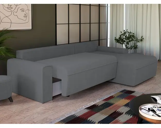 Coltar Blanca Cremona 95 Coltar Blanca Cremona 95 este un coltar extensibil caracterizat de linii simple si minimaliste , fiind usor de integrat in orice decor. Modern si totodata elegant, acesta este si confortabil datorita celor trei perne mari detasabile si bratelor usor rotunjite. Printre cele mai importante functii ale coltarului este capacitatea de a se transforma intr-un pat generos si confortabil de 240 x 153 cm . Este prevazut cu lada de depozitare si are dimensiunile de: 280 cm lungime, 175 cm latime, 90 cm inaltime totala . Este tapitat cu o stofa premium uni pe diverse culori. Atentie: Pretul afisat nu include alte accesorii sau obiecte de decor. Taburetele, pernele deco si draperiile se pot achizitiona optional. Livrare gratuita si rapida, 4-10 zile lucratoare prin flota proprie Suntem producatori de tapiterii, fara intermediari Toate piesele de tapiterii au o garantie de 2 ani Sezutul si extensia coltarului sunt pe relaxa (arcuri elicoidale si poliuretan) . Scheletul este rezistent, realizat pe structura solida de fag si pal . Extensia este de tip Lift: partea de sezut se ridica si se trage in fata, permitand partii de spatar sa gliseze spre partea din fata si sa se pozitioneze orizontal. Coltar Blanca Cremona 95 se incadreaza cu usurinta in majoritatea locuintelor indiferent de stilul acestora. Puteti alege din mai multe culori pentru stofa. Produsele disponibile le puteti vedea aici Modele Blanca . Dimensiuni Coltar Blanca Lungime: 280 cm Latime: 175 cm Inaltime sezut: 45 cm Inaltime totala: 90 cm Inaltime brate: 58 cm Grosime brate: 20 cm Adancime sezut cu perne: 55 cm Adancime sezut fara perne: 80 cm Adancime sezlong cu perne: 130 cm Adancime sezlong cu perne: 153 cm Inaltime picior: 3 cm Dimensiuni extins Lungime extins: 240 cm Adancime extins: 153 cm Tapiterie Coltar Blanca Cremona 95 Tapiteria produsului este din stofa Gri Inchis - Cremona 95 . Nuanta acestui produs nu este pretentioasa, mascheaza eventualele evenimente neplacute prin care se poate murdari sau pata si se integreaza perfect in majoritatea locuintelor. Intretinere: se recomanda ca praful sa se stearga cu un material textil moale (finet) umed si sa nu se curete cu agenti chimici (diluant, acetona). Imaginile sunt cu titlu de prezentare si pot avea mici diferente de nuante in functie de display. Dimensiunile sunt exprimate in centimetri si pot oscila intre ± 50 mm. Produsul cu denumirea Coltar Blanca Cremona 95 face parte din brandul Mobila laguna, se afla in categoria Canapele extensibile si subcategoria