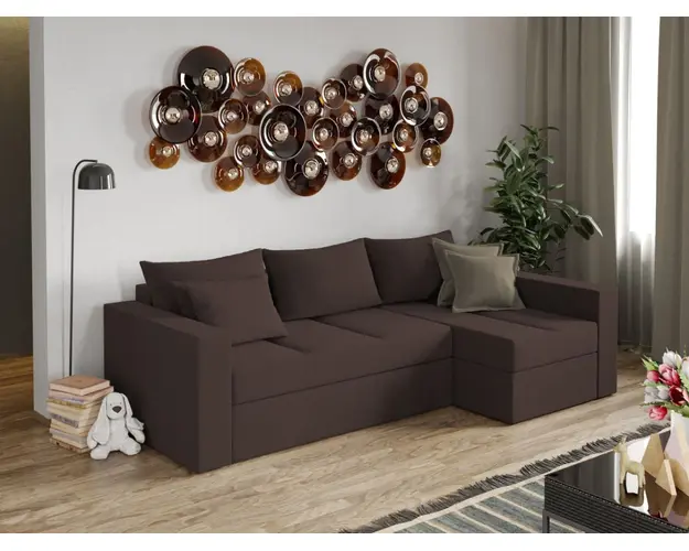 Coltar Cargo Maro Oferind trei locuri primitoare, Coltar Cargo Maro este un mobilier potrivit incaperilor mici sau medii si cochete. Ofera un confort sporit dat de pernele detasabile mari si mici, cat si utilitate prin posibilitatea de extindere si prin lada de depozitare , ideala pentru depozitarea lenjeriei sau a altor obiecte. Are dimensiunile de: 248 cm lungime, 137 cm latime, 85 cm inaltime totala . Dupa extindere, obtineti un spatiu pentru odihna si relaxare, cu suprafata utila 210 x 140 cm . Este tapitat cu o stofa de calitate uni pe diverse culori. Atentie: Pretul afisat nu include alte accesorii sau obiecte de decor. Draperiile si pernele deco se pot achizitiona optional. Livrare gratuita si rapida, 4-10 zile lucratoare prin flota proprie Suntem producatori de tapiterii, fara intermediari Toate piesele de tapiterii au o garantie de 2 ani Sezutul si extensia coltarului sunt pe relaxa (arcuri elicoidale si poliuretan) . Scheletul este rezistent, realizat pe structura solida de fag si pal. Extensia este de tip Doppelliege ce prezinta un sistem actionat prin role, astfel ca partea de sezut se trage si permite partii de spatar sa gliseze spre partea din fata si sa se pozitioneze orizontal. Coltar Cargo Maro se incadreaza cu usurinta in majoritatea locuintelor indiferent de stilul acestora. Puteti alege din mai multe culori pentru stofa. Produsele disponibile le puteti vedea aici Modele Cargo . Videoclipul poate contine alta nuanta decat cea de pe pagina produsului, acesta avand ca scop prezentarea familiei pentru a se reda in detaliu aspectul materialului. Dimensiuni Coltar Cargo Lungime: 248 cm Latime: 137 cm Lungime intre brate: 210 cm Inaltime sezut: 43 cm Inaltime: 85 cm Adancime sezut cu perne: 60 cm Adancime selong fara perne: 100 cm Dimensiuni extins Lungime extins: 210 cm Adancime extins: 140 cm Tapiterie Coltar Cargo Maro Tapiteria produsului este din stofa Maro. Nuanta acestui produs nu este pretentioasa, mascheaza eventualele evenimente neplacute prin care se poate murdari sau pata si se integreaza perfect in majoritatea locuintelor. Intretinere: se recomanda ca praful sa se stearga cu un material textil moale (finet) umed si sa nu se curete cu agenti chimici (diluant, acetona). Imaginile sunt cu titlu de prezentare si pot avea mici diferente de nuante in functie de display. Dimensiunile sunt exprimate in centimetri si pot oscila intre ± 50 mm. Produsul cu denumirea Coltar Cargo Maro face parte din brandul Mobila laguna, se afla in categoria Canapele extensibile si subcategoria
