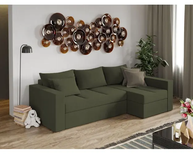Coltar Cargo Verde Oferind trei locuri primitoare, Coltar Cargo Verde este un mobilier potrivit incaperilor mici sau medii si cochete. Ofera un confort sporit dat de pernele detasabile mari si mici, cat si utilitate prin posibilitatea de extindere si prin lada de depozitare , ideala pentru depozitarea lenjeriei sau a altor obiecte. Are dimensiunile de: 248 cm lungime, 137 cm latime, 85 cm inaltime totala . Dupa extindere, obtineti un spatiu pentru odihna si relaxare, cu suprafata utila 210 x 140 cm . Este tapitat cu o stofa de calitate uni pe diverse culori. Atentie: Pretul afisat nu include alte accesorii sau obiecte de decor. Draperiile si pernele deco se pot achizitiona optional. Livrare gratuita si rapida, 4-10 zile lucratoare prin flota proprie Suntem producatori de tapiterii, fara intermediari Toate piesele de tapiterii au o garantie de 2 ani Sezutul si extensia coltarului sunt pe relaxa (arcuri elicoidale si poliuretan) . Scheletul este rezistent, realizat pe structura solida de fag si pal. Extensia este de tip Doppelliege ce prezinta un sistem actionat prin role, astfel ca partea de sezut se trage si permite partii de spatar sa gliseze spre partea din fata si sa se pozitioneze orizontal. Coltar Cargo Verde se incadreaza cu usurinta in majoritatea locuintelor indiferent de stilul acestora. Puteti alege din mai multe culori pentru stofa. Produsele disponibile le puteti vedea aici Modele Cargo . Dimensiuni Coltar Cargo Lungime: 248 cm Latime: 137 cm Lungime intre brate: 210 cm Inaltime sezut: 43 cm Inaltime: 85 cm Adancime sezut cu perne: 60 cm Adancime selong fara perne: 100 cm Dimensiuni extins Lungime extins: 210 cm Adancime extins: 140 cm Tapiterie Coltar Cargo Verde Tapiteria produsului este din stofa Verde. Nuanta acestui produs nu este pretentioasa, mascheaza eventualele evenimente neplacute prin care se poate murdari sau pata si se integreaza perfect in majoritatea locuintelor. Intretinere: se recomanda ca praful sa se stearga cu un material textil moale (finet) umed si sa nu se curete cu agenti chimici (diluant, acetona). Imaginile sunt cu titlu de prezentare si pot avea mici diferente de nuante in functie de display. Dimensiunile sunt exprimate in centimetri si pot oscila intre ± 50 mm. Produsul cu denumirea Coltar Cargo Verde face parte din brandul Mobila laguna, se afla in categoria Canapele extensibile si subcategoria