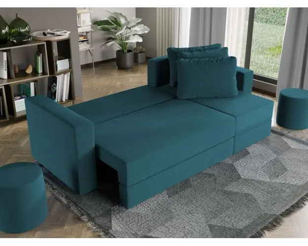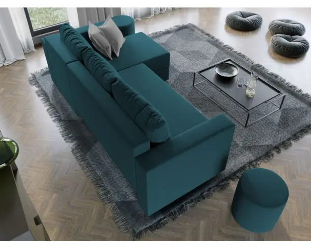 Oferta Coltar extensibil cu lada Alfa turcoaz / como88 Profitati de oferta pentru Coltar extensibil cu lada Alfa turcoaz / como88 , aveti urmatoarele beneficii: Fara surprize la livrare, este exact ca in pozele de prezentare Livrare gratuita si rapida, 4-10 zile lucratoare prin curier Suntem producatori de tapiterii, fara intermediari Toate piesele de tapiterii au o garantie de 2 ani Atentie: Pretul afisat nu include alte accesorii sau obiecte de decor. Taburetele, pernele deco si draperiile se pot achizitiona optional. Puteti sa montati coltul pe ce parte doriti, pe stanga sau pe dreapta. Acest Coltar Extensibil cu lada pentru living are dimensiuni generoase, fiind potrivit pentru incaperi medii sau mari: 250 cm lungime, 140 cm latime, 85 cm inaltime totala . In plus, datorita posibilitatii de extindere, obtineti un spatiu pentru odihna si relaxare, cu suprafata utila 210 x 135 cm . Astfel, nu va mai ramane decat sa va relaxati si sa va bucurati de un somn odihnitor. Coltar extensibil cu lada Alfa turcoaz / como88 Sezutul si extensia canapelei sunt pe relaxa (arcuri elicoidale si poliuretan) . Ofera fermitatea optima, dar si confortul dorit. Lada incorporata este ideala pentru depozitarea lenjeriei, a pernelor sau a paturii, pentru a pastra la indemana toate articolele frecvent utilizate. Scheletul este rezistent realizat pe structura din lemn de fag. Avem incredere in imaginatia dvs. in materie de mobilier. Modern, incapator si comod, coltarul extensibil cu lada Alfa turcoaz / como88 poate fi inconjurat de multe stiluri de mobila. Coltarul este extensibil si se transforma rapid intr-un pat de doua persoane de 210 x 135 cm Dimensiunile coltarului Lungime: 250 cm Latime: 140 cm Lungime intre brate: 210 cm Lungime extins: 210 cm Adancime extins: 120 cm + 15 cm pe partea de canapea Inaltime cu perne: 85 cm Inaltime fara perne: 70 cm Inaltime sezut: 44 cm Tapiterie Coltar extensibil cu lada Alfa Tapiteria produsului este din stofa turcoaz / como88, puteti vedea in poza alaturata o imagine de detaliu a materialului. Astfel nu aveti surprize de culoare la livrare. Nuanta acestui produs nu este pretentioasa, mascheaza eventualele evenimente neplacute prin care se poate murdari sau pata si se integreaza perfect in majoritatea locuintelor. Intretinere: se recomanda ca praful sa se stearga cu un material textil moale (finet) umed si sa nu se curete cu agenti chimici (diluant, acetona). Imaginile sunt cu titlu de prezentare si pot avea mici diferente de nuante in functie de display. Dimensiunile sunt exprimate in centimetri si pot oscila intre ± 50 mm. DESCARCA SCHITA DE MONTAJ Produsul cu denumirea Coltar Extensibil Alfa turcoaz face parte din brandul Mobila laguna, se afla in categoria Oferte coltare si subcategoria