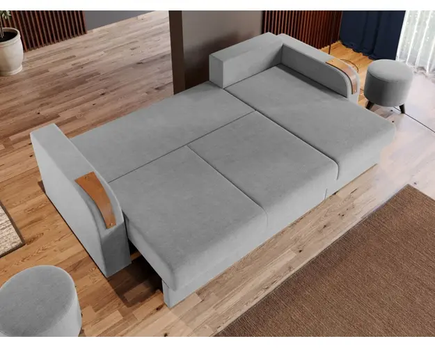 Coltar Morelia Gri Deschis Coltar Morelia Gri Deschis este un coltar extensibil cu lada, cu un aspect minimalist si usor elegant, datorita insertiilor de lemn de pe brate. Este usor de integrat in orice decor, fiind ideal pentru incaperi medii sau mari si are dimensiuni generoase: 240 cm lungime, 145 cm latime, 85 cm inaltime totala . In plus, datorita posibilitatii de extindere , obtineti un spatiu pentru odihna si relaxare,cu suprafata utila 210 x 145 cm . Cele trei perne ale coltarului sunt detasabile . Atentie: Pretul afisat nu include alte accesorii sau obiecte de decor. Taburetele, pernele deco si draperiile se pot achizitiona optional. Livrare gratuita si rapida, 4-10 zile lucratoare prin flota proprie Suntem producatori de tapiterii, fara intermediari Toate piesele de tapiterii au o garantie de 2 ani Puteti sa montati coltul pe ce parte doriti, pe stanga sau pe dreapta. Sezutul si extensia coltarului sunt pe relaxa (arcuri elicoidale si poliuretan) . Lada incorporata este ideala pentru depozitarea lenjeriei sau a altor obiecte. Scheletul este rezistent realizat pe structura solida de fag si pal. Coltarul Morelia se incadreaza cu usurinta in majoritatea locuintelor indiferent de stilul acestora. Puteti alege din mai multe culori pentru stofa. Produsele disponibile le puteti veadea aici Modele Morelia . Videoclipul poate contine alta nuanta decat cea de pe pagina produsului, acesta avand ca scop prezentarea familiei. Dimensiuni Coltar Morelia Lungime: 240 cm Latime: 145 cm Lungime intre brate: 210 cm Inaltime sezut: 42 cm Adancime sezut: 82 cm (fara perne) Adancime sezut: 60 cm (pana in perne) Adancime sezlon 125 cm (fara perne) Adancime sezlon 105 cm (pana in perne) Inaltime cu perne: 85 cm Inaltime fara perne: 68 cm Dimensiuni extins Lungime extins: 210 cm Adancime extins: 145 cm Dimensiuni brate Inaltime brate: 64 cm Lungime brate: 93 cm Tapiterie Coltar Morelia Gri Deschis Tapiteria produsului este din stofa gri deschis . Nuanta acestui produs nu este pretentioasa, mascheaza eventualele evenimente neplacute prin care se poate murdari sau pata si se integreaza perfect in majoritatea locuintelor. Intretinere: se recomanda ca praful sa se stearga cu un material textil moale (finet) umed si sa nu se curete cu agenti chimici (diluant, acetona). Imaginile sunt cu titlu de prezentare si pot avea mici diferente de nuante in functie de display. Dimensiunile sunt exprimate in centimetri si pot oscila intre ± 50 mm. Produsul cu denumirea Coltar Extensibil Morelia Gri Deschis face parte din brandul Mobila laguna, se afla in categoria Oferte canapele- coltare- scaune si mese si subcategoria