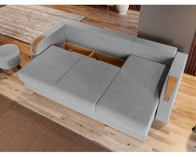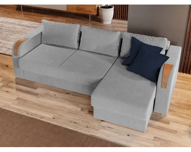 Coltar Morelia Gri Deschis Coltar Morelia Gri Deschis este un coltar extensibil cu lada, cu un aspect minimalist si usor elegant, datorita insertiilor de lemn de pe brate. Este usor de integrat in orice decor, fiind ideal pentru incaperi medii sau mari si are dimensiuni generoase: 240 cm lungime, 145 cm latime, 85 cm inaltime totala . In plus, datorita posibilitatii de extindere , obtineti un spatiu pentru odihna si relaxare,cu suprafata utila 210 x 145 cm . Cele trei perne ale coltarului sunt detasabile . Atentie: Pretul afisat nu include alte accesorii sau obiecte de decor. Taburetele, pernele deco si draperiile se pot achizitiona optional. Livrare gratuita si rapida, 4-10 zile lucratoare prin flota proprie Suntem producatori de tapiterii, fara intermediari Toate piesele de tapiterii au o garantie de 2 ani Puteti sa montati coltul pe ce parte doriti, pe stanga sau pe dreapta. Sezutul si extensia coltarului sunt pe relaxa (arcuri elicoidale si poliuretan) . Lada incorporata este ideala pentru depozitarea lenjeriei sau a altor obiecte. Scheletul este rezistent realizat pe structura solida de fag si pal. Coltarul Morelia se incadreaza cu usurinta in majoritatea locuintelor indiferent de stilul acestora. Puteti alege din mai multe culori pentru stofa. Produsele disponibile le puteti veadea aici Modele Morelia . Videoclipul poate contine alta nuanta decat cea de pe pagina produsului, acesta avand ca scop prezentarea familiei. Dimensiuni Coltar Morelia Lungime: 240 cm Latime: 145 cm Lungime intre brate: 210 cm Inaltime sezut: 42 cm Adancime sezut: 82 cm (fara perne) Adancime sezut: 60 cm (pana in perne) Adancime sezlon 125 cm (fara perne) Adancime sezlon 105 cm (pana in perne) Inaltime cu perne: 85 cm Inaltime fara perne: 68 cm Dimensiuni extins Lungime extins: 210 cm Adancime extins: 145 cm Dimensiuni brate Inaltime brate: 64 cm Lungime brate: 93 cm Tapiterie Coltar Morelia Gri Deschis Tapiteria produsului este din stofa gri deschis . Nuanta acestui produs nu este pretentioasa, mascheaza eventualele evenimente neplacute prin care se poate murdari sau pata si se integreaza perfect in majoritatea locuintelor. Intretinere: se recomanda ca praful sa se stearga cu un material textil moale (finet) umed si sa nu se curete cu agenti chimici (diluant, acetona). Imaginile sunt cu titlu de prezentare si pot avea mici diferente de nuante in functie de display. Dimensiunile sunt exprimate in centimetri si pot oscila intre ± 50 mm. Produsul cu denumirea Coltar Extensibil Morelia Gri Deschis face parte din brandul Mobila laguna, se afla in categoria Oferte canapele- coltare- scaune si mese si subcategoria