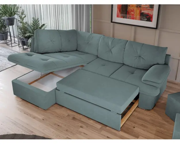 Coltar Roma Turcoaz Coltar Roma Turcoaz are un design modern si dimensiuni generoase. Pe langa nivelul de confort si relaxare pe care il ofera, acest coltar este alegerea potrivita pentru un living spatios. Se poate transforma intr-un pat in doar cateva minute si este prevazut cu lada pentru depozitare pozitionata sub sezlong, care poate fi accesata prin ridicarea partii superioare a acestuia. Coltarul are dimensiunea de: 245 cm lungime, 185 cm latime, 85 cm inaltime totala . Dupa extindere, obtineti un spatiu pentru odihna si relaxare, cu suprafata utila 180 x 130 cm . Este tapitat cu stofa de calitate pe diverse culori. Pernele nu sunt detasabile. Atentie: Pretul afisat nu include alte accesorii sau obiecte de decor. Taburetele, pernele deco si draperiile se pot achizitiona optional. Livrare gratuita si rapida, 4-10 zile lucratoare prin flota proprie Suntem producatori de tapiterii, fara intermediari Toate piesele de tapiterii au o garantie de 2 ani Sezutul si extensia coltarului sunt din poliuretan High Resilience . Scheletul este rezistent, realizat pe structura solida de fag si pal. Extensia de tip sertar este pozitionata sub sezutul coltarului. Se deschide ca un sertar, apoi se ridica salteaua din interiorul acestuia. Coltar Roma Turcoaz se incadreaza cu usurinta in majoritatea locuintelor indiferent de stilul acestora. Puteti alege din mai multe culori pentru stofa. Produsele disponibile le puteti vedea aici Modele Roma . Videoclipul poate contine alta nuanta decat cea de pe pagina produsului, acesta avand ca scop prezentarea familiei pentru a se reda in detaliu aspectul materialului. Dimensiuni Coltar Roma Lungime: 245 cm Latime: 185 cm Lungime intre brate: 180 cm Inaltime sezut: 43 cm Inaltime : 85 cm Adancime sezut: 60 cm Adancime selon 150 cm Latime sezlon 100 cm Dimensiuni extinsa Lungime extinsa: 180 cm Adancime extinsa: 130 cm Tapiterie Coltar Roma Turcoaz Tapiteria produsului este din stofa Turcoaz. Nuanta acestui produs nu este pretentioasa, mascheaza eventualele evenimente neplacute prin care se poate murdari sau pata si se integreaza perfect in majoritatea locuintelor. Intretinere: se recomanda ca praful sa se stearga cu un material textil moale (finet) umed si sa nu se curete cu agenti chimici (diluant, acetona). Imaginile sunt cu titlu de prezentare si pot avea mici diferente de nuante in functie de display. Dimensiunile sunt exprimate in centimetri si pot oscila intre ± 50 mm. Produsul cu denumirea Coltar Extensibil Roma Turcoaz face parte din brandul Mobila laguna, se afla in categoria Canapele extensibile si subcategoria