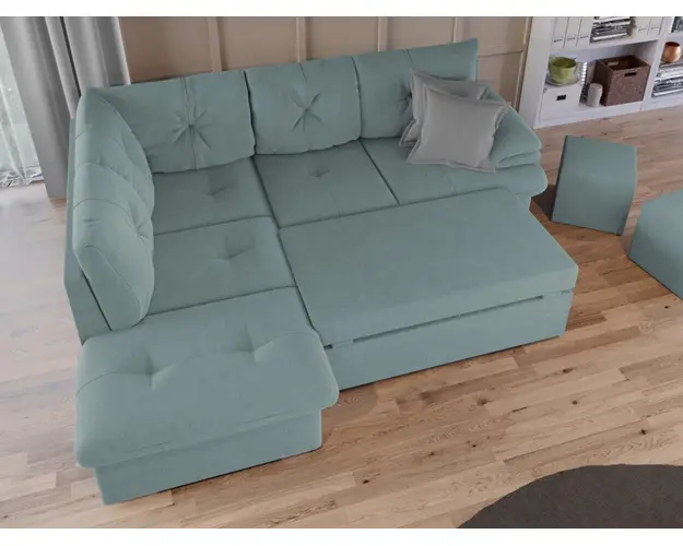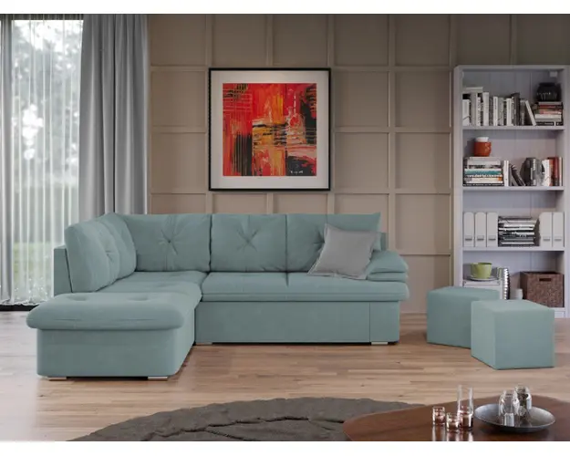 Coltar Roma Turcoaz Coltar Roma Turcoaz are un design modern si dimensiuni generoase. Pe langa nivelul de confort si relaxare pe care il ofera, acest coltar este alegerea potrivita pentru un living spatios. Se poate transforma intr-un pat in doar cateva minute si este prevazut cu lada pentru depozitare pozitionata sub sezlong, care poate fi accesata prin ridicarea partii superioare a acestuia. Coltarul are dimensiunea de: 245 cm lungime, 185 cm latime, 85 cm inaltime totala . Dupa extindere, obtineti un spatiu pentru odihna si relaxare, cu suprafata utila 180 x 130 cm . Este tapitat cu stofa de calitate pe diverse culori. Pernele nu sunt detasabile. Atentie: Pretul afisat nu include alte accesorii sau obiecte de decor. Taburetele, pernele deco si draperiile se pot achizitiona optional. Livrare gratuita si rapida, 4-10 zile lucratoare prin flota proprie Suntem producatori de tapiterii, fara intermediari Toate piesele de tapiterii au o garantie de 2 ani Sezutul si extensia coltarului sunt din poliuretan High Resilience . Scheletul este rezistent, realizat pe structura solida de fag si pal. Extensia de tip sertar este pozitionata sub sezutul coltarului. Se deschide ca un sertar, apoi se ridica salteaua din interiorul acestuia. Coltar Roma Turcoaz se incadreaza cu usurinta in majoritatea locuintelor indiferent de stilul acestora. Puteti alege din mai multe culori pentru stofa. Produsele disponibile le puteti vedea aici Modele Roma . Videoclipul poate contine alta nuanta decat cea de pe pagina produsului, acesta avand ca scop prezentarea familiei pentru a se reda in detaliu aspectul materialului. Dimensiuni Coltar Roma Lungime: 245 cm Latime: 185 cm Lungime intre brate: 180 cm Inaltime sezut: 43 cm Inaltime : 85 cm Adancime sezut: 60 cm Adancime selon 150 cm Latime sezlon 100 cm Dimensiuni extinsa Lungime extinsa: 180 cm Adancime extinsa: 130 cm Tapiterie Coltar Roma Turcoaz Tapiteria produsului este din stofa Turcoaz. Nuanta acestui produs nu este pretentioasa, mascheaza eventualele evenimente neplacute prin care se poate murdari sau pata si se integreaza perfect in majoritatea locuintelor. Intretinere: se recomanda ca praful sa se stearga cu un material textil moale (finet) umed si sa nu se curete cu agenti chimici (diluant, acetona). Imaginile sunt cu titlu de prezentare si pot avea mici diferente de nuante in functie de display. Dimensiunile sunt exprimate in centimetri si pot oscila intre ± 50 mm. Produsul cu denumirea Coltar Extensibil Roma Turcoaz face parte din brandul Mobila laguna, se afla in categoria Canapele extensibile si subcategoria
