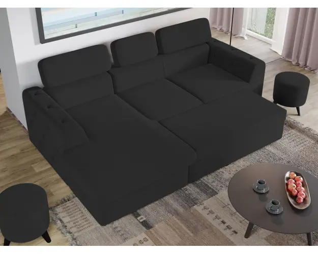 Coltar Grace Gri Antracit Stim cat de important este sa alegi piesa centrala a sufrageriei, asa ca am gandit acest coltar bifand trei elemente esentiale: confort, utilitate si aspect. Coltar Grace Gri Antracit prezinta trei tetiere reglabile si lada pentru depozitare pozitionata sub sezlong, care poate fi accesata prin ridicarea partii superioare a acestuia. Imbina cu succes functionalitatea cu designul, transformandu-se rapid intr-un pat confortabil de 200 x 130 cm . Butonii de pe brate dau un plus de eleganta si stil oricarui living. Este potrivit pentru un living cu dimensiuni generoase, avand dimensiunea de: 260 cm lungime, 165 cm latime, 94 cm inaltime totala . Este tapitat cu stofa de calitate pe diverse culori. Atentie: Pretul afisat nu include alte accesorii sau obiecte de decor. Taburetele, pernele deco si draperiile se pot achizitiona optional. Livrare gratuita si rapida, 4-10 zile lucratoare prin flota proprie Suntem producatori de tapiterii, fara intermediari Toate piesele de tapiterii au o garantie de 2 ani Sezutul si extensia coltarului sunt din poliuretan High Resilience . Scheletul este rezistent, realizat pe structura solida de fag si pal. Extensia de tip sertar este pozitionata sub sezutul coltarului. Se deschide ca un sertar, apoi se ridica salteaua din interiorul acestuia. Coltar Grace Gri Antracit se incadreaza cu usurinta in majoritatea locuintelor indiferent de stilul acestora. Puteti alege din mai multe culori pentru stofa. Produsele disponibile le puteti vedea aici Modele Grace . Dimensiuni Coltar Grace Lungime: 260 cm Latime: 165 cm Lungime intre brate: 200 cm Inaltime sezut: 45 cm Inaltime: 94 cm Adancime sezut: 63 cm Adancime selon 130 cm Latime sezlon 100 cm Inaltime brate: 60 cm Lungime brate: 96 cm Inaltime spatar cu tetiere inchise: 72 cm Inaltime spatar cu tetiere ridicate: 94 cm Dimensiuni extinsa Lungime extinsa: 200 cm Adancime extinsa: 130 cm Tapiterie Coltar Grace Gri Antracit Tapiteria produsului este din stofa Gri Antracit. Nuanta acestui produs nu este pretentioasa, mascheaza eventualele evenimente neplacute prin care se poate murdari sau pata si se integreaza perfect in majoritatea locuintelor. Intretinere: se recomanda ca praful sa se stearga cu un material textil moale (finet) umed si sa nu se curete cu agenti chimici (diluant, acetona). Imaginile sunt cu titlu de prezentare si pot avea mici diferente de nuante in functie de display. Dimensiunile sunt exprimate in centimetri si pot oscila intre ± 50 mm. Produsul cu denumirea Coltar Grace Gri Antracit face parte din brandul Mobila laguna, se afla in categoria Canapele extensibile si subcategoria