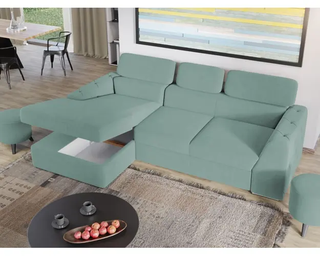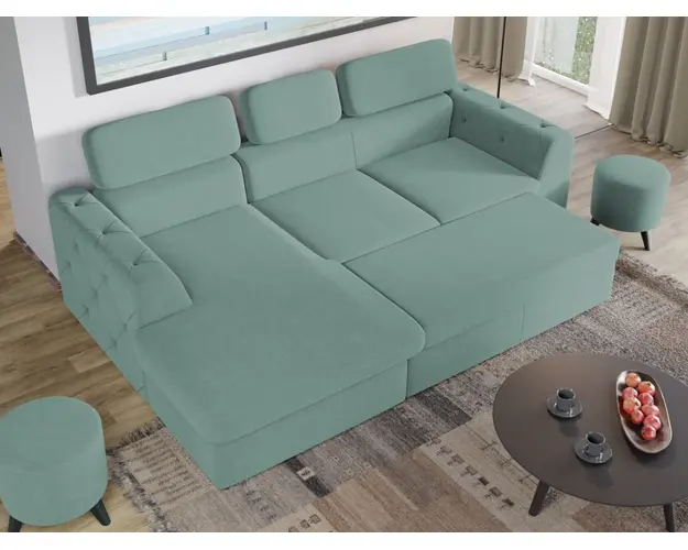 Coltar Grace Leto 75 Stim cat de important este sa alegi piesa centrala a sufrageriei, asa ca am gandit acest coltar bifand trei elemente esentiale: confort, utilitate si aspect. Coltar Grace Leto 75 prezinta trei tetiere reglabile si lada pentru depozitare pozitionata sub sezlong, care poate fi accesata prin ridicarea partii superioare a acestuia. Imbina cu succes functionalitatea cu designul, transformandu-se rapid intr-un pat confortabil de 200 x 130 cm . Butonii de pe brate dau un plus de eleganta si stil oricarui living. Este potrivit pentru un living cu dimensiuni generoase, avand dimensiunea de: 260 cm lungime, 165 cm latime, 94 cm inaltime totala . Este tapitat cu stofa de calitate pe diverse culori. Atentie: Pretul afisat nu include alte accesorii sau obiecte de decor. Taburetele, pernele deco si draperiile se pot achizitiona optional. Livrare gratuita si rapida, 4-10 zile lucratoare prin flota proprie Suntem producatori de tapiterii, fara intermediari Toate piesele de tapiterii au o garantie de 2 ani Sezutul si extensia coltarului sunt din poliuretan High Resilience . Scheletul este rezistent, realizat pe structura solida de fag si pal. Extensia de tip sertar este pozitionata sub sezutul coltarului. Se deschide ca un sertar, apoi se ridica salteaua din interiorul acestuia. Coltar Grace Leto 75 se incadreaza cu usurinta in majoritatea locuintelor indiferent de stilul acestora. Puteti alege din mai multe culori pentru stofa. Produsele disponibile le puteti vedea aici Modele Grace . Dimensiuni Coltar Grace Lungime: 260 cm Latime: 165 cm Lungime intre brate: 200 cm Inaltime sezut: 45 cm Inaltime: 94 cm Adancime sezut: 63 cm Adancime selon 130 cm Latime sezlon 100 cm Inaltime brate: 60 cm Lungime brate: 96 cm Inaltime spatar cu tetiere inchise: 72 cm Inaltime spatar cu tetiere ridicate: 94 cm Dimensiuni extinsa Lungime extinsa: 200 cm Adancime extinsa: 130 cm Tapiterie Coltar Grace Leto 75 Tapiteria produsului este din stofa Leto 75. Nuanta acestui produs nu este pretentioasa, mascheaza eventualele evenimente neplacute prin care se poate murdari sau pata si se integreaza perfect in majoritatea locuintelor. Intretinere: se recomanda ca praful sa se stearga cu un material textil moale (finet) umed si sa nu se curete cu agenti chimici (diluant, acetona). Imaginile sunt cu titlu de prezentare si pot avea mici diferente de nuante in functie de display. Dimensiunile sunt exprimate in centimetri si pot oscila intre ± 50 mm. Produsul cu denumirea Coltar Grace Leto 75 face parte din brandul Mobila laguna, se afla in categoria Canapele extensibile si subcategoria